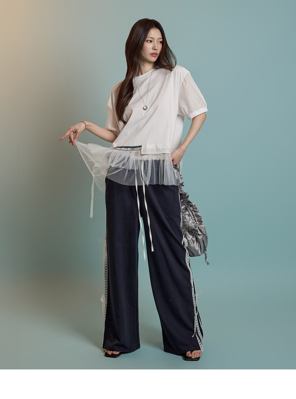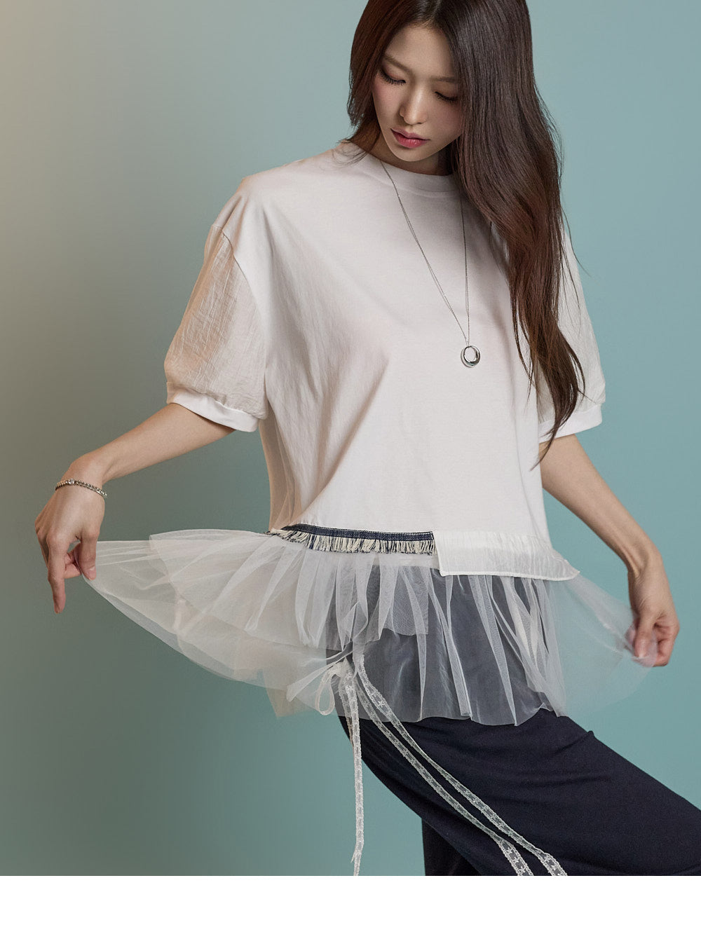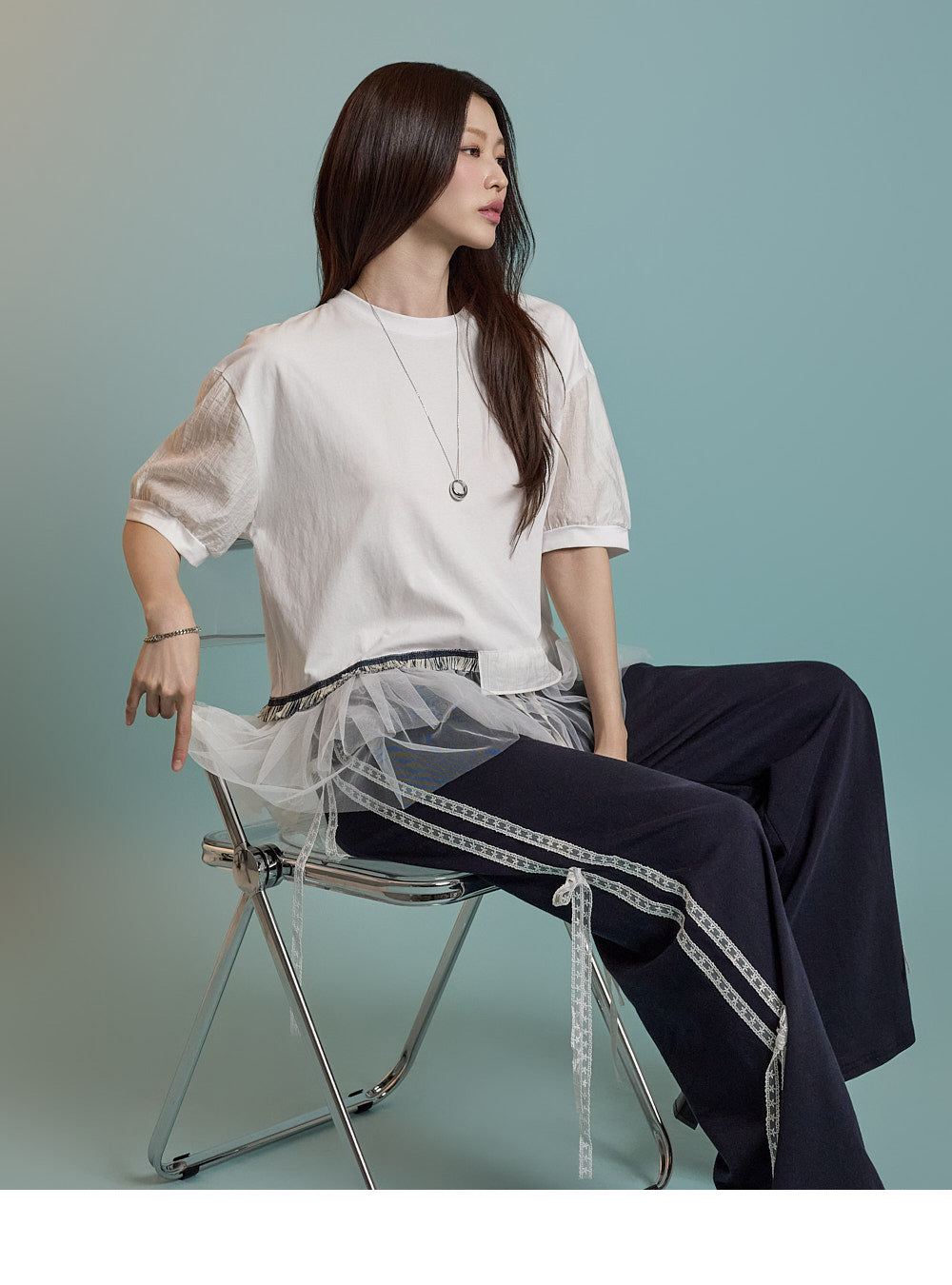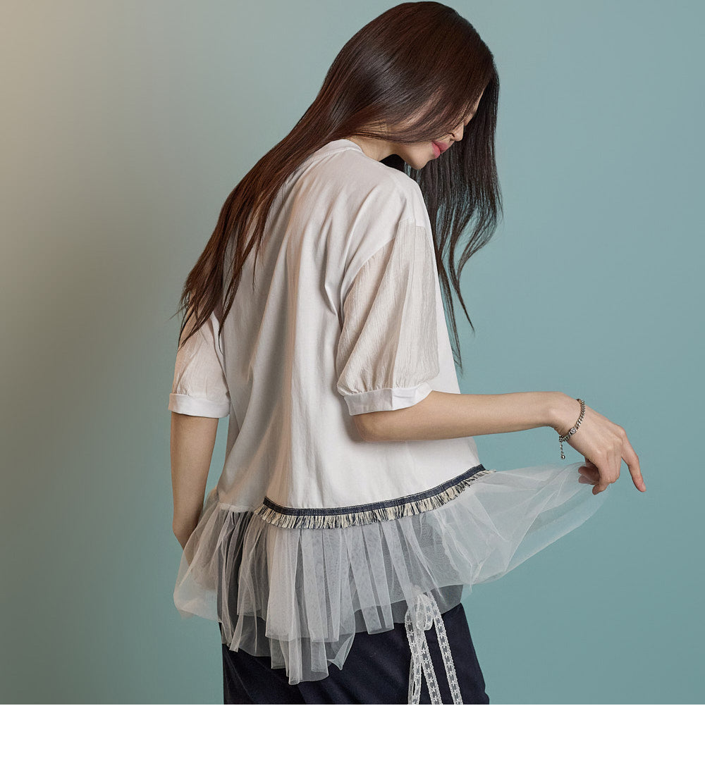 这款休闲蕾丝荷叶边上衣具有轻盈柔软的触感,