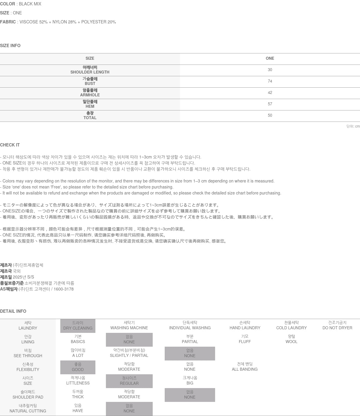 模特身高 174 厘米,穿着 ONE 尺码的 BLACK MIX 服装。