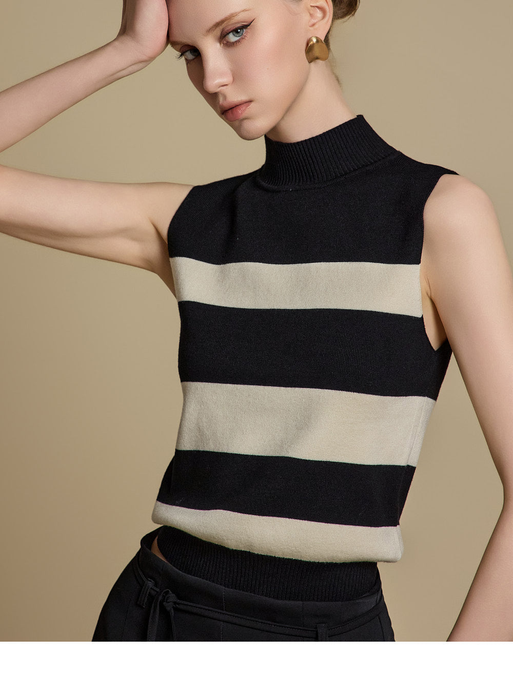E3787 条纹无袖针织上衣