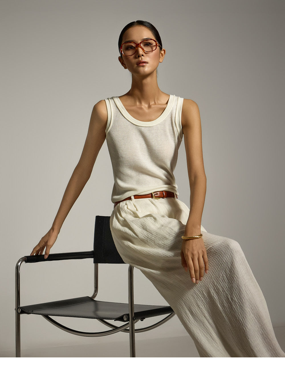 这款无袖上衣用途广泛,适合日常穿着和分层造型。