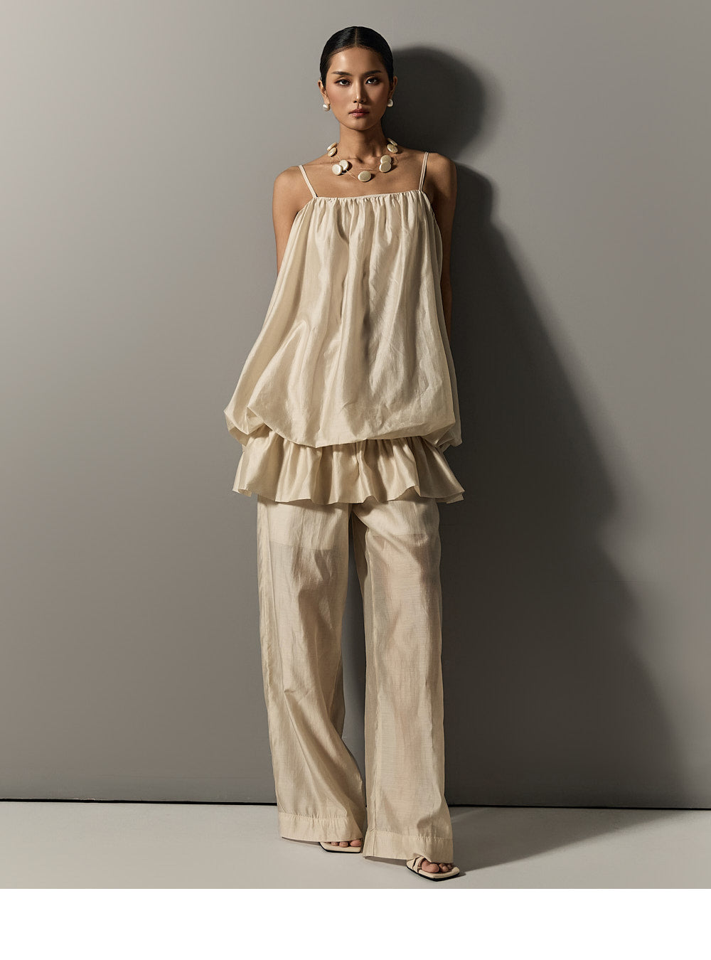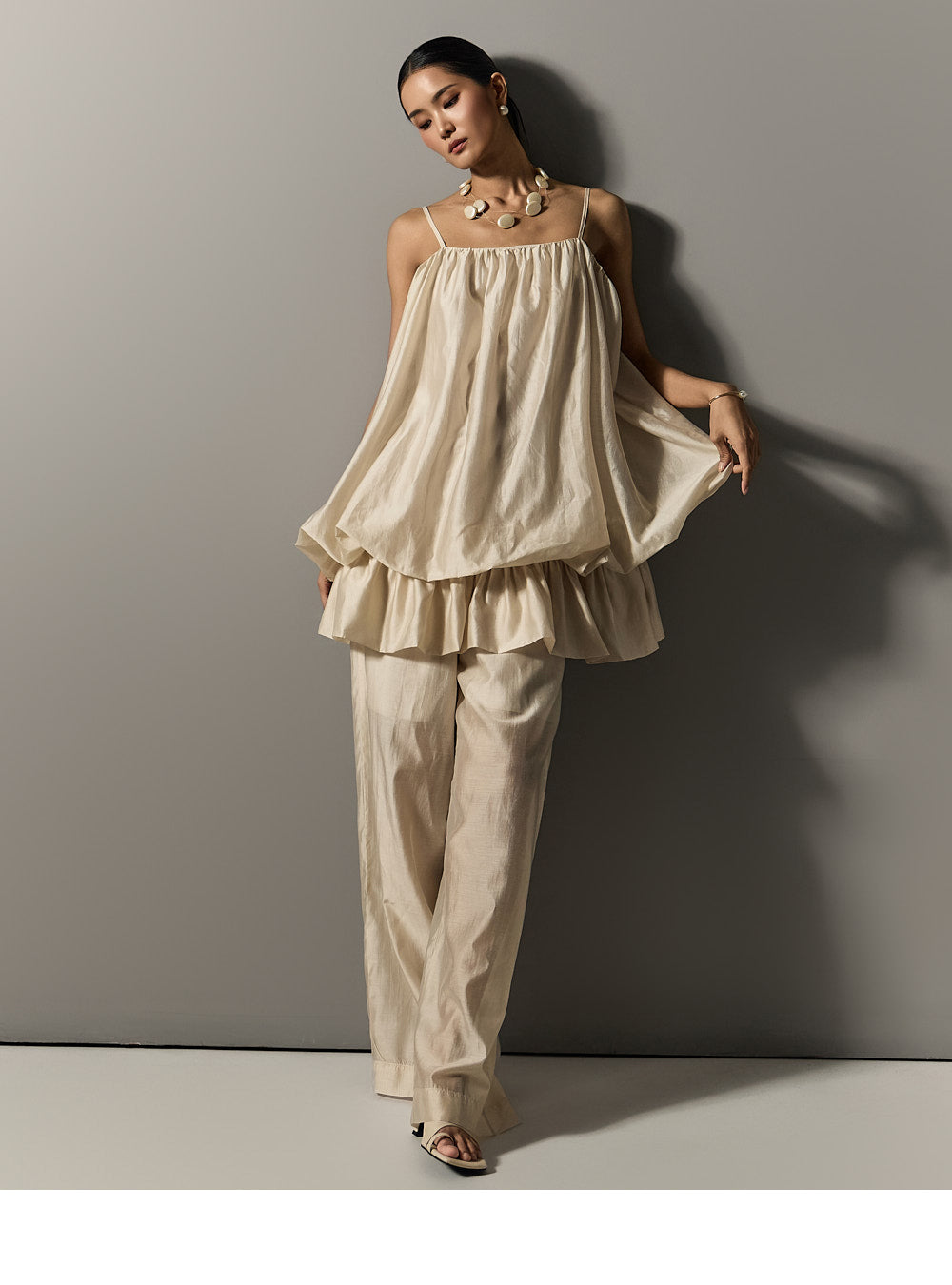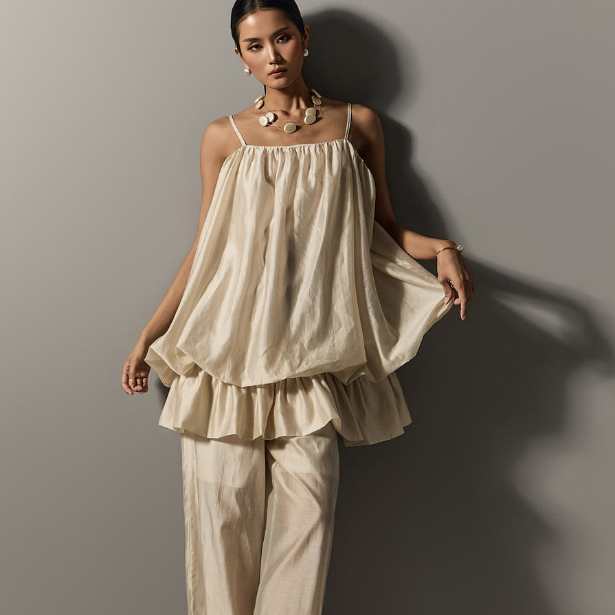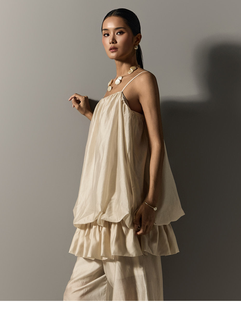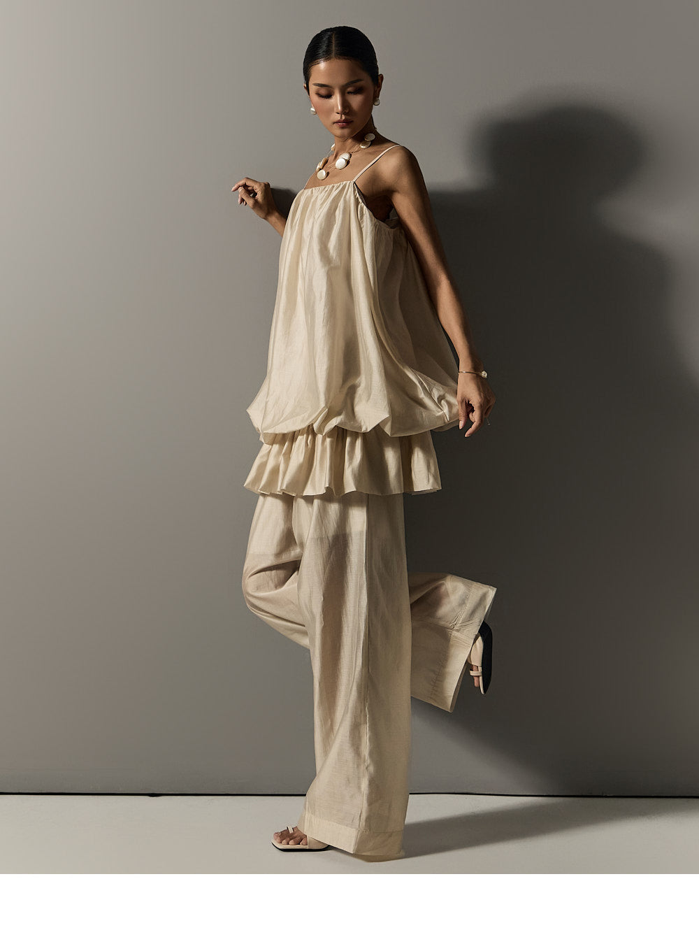 而分层的荷叶边下摆即使单独穿着也增添了时尚感。