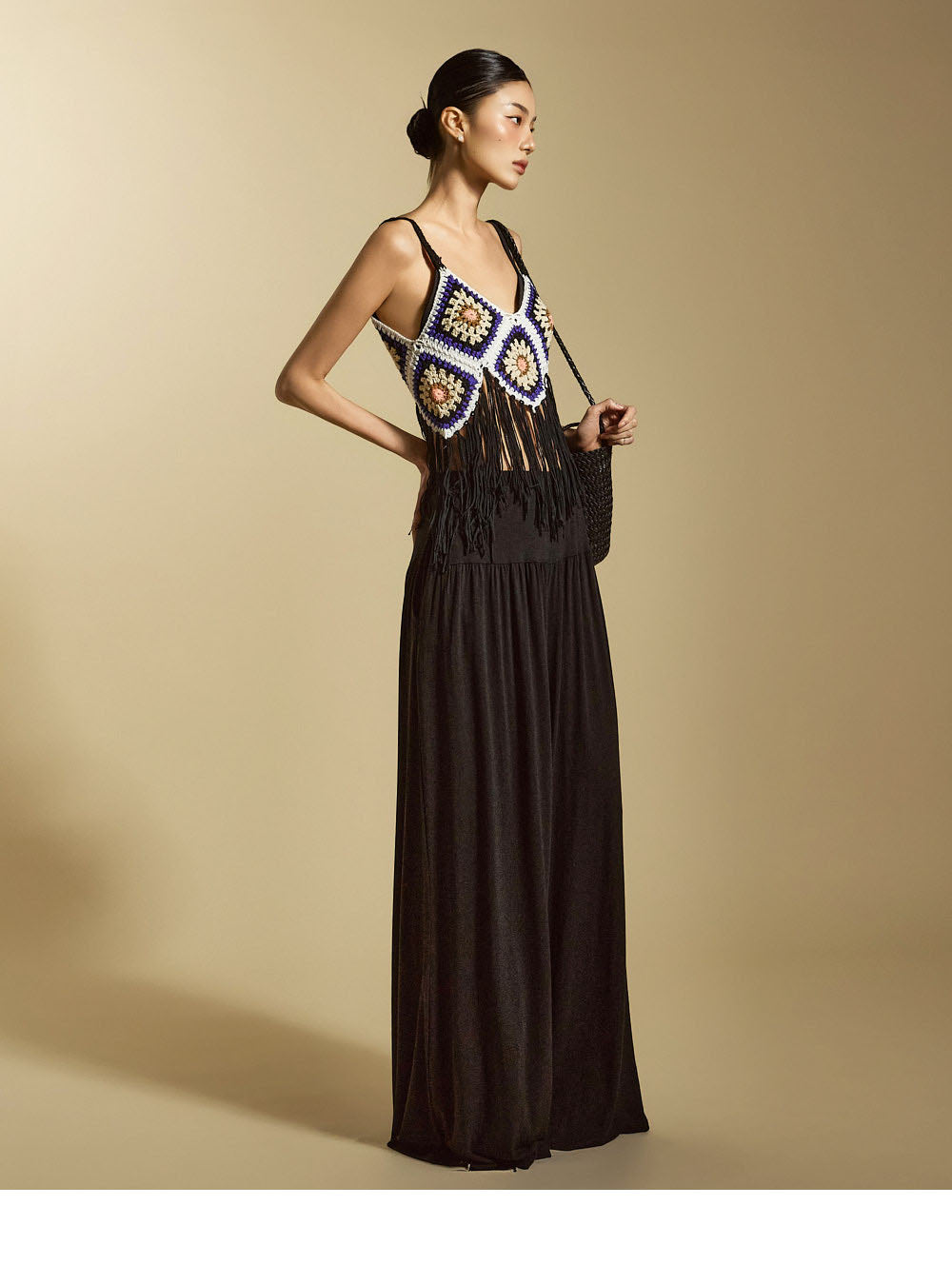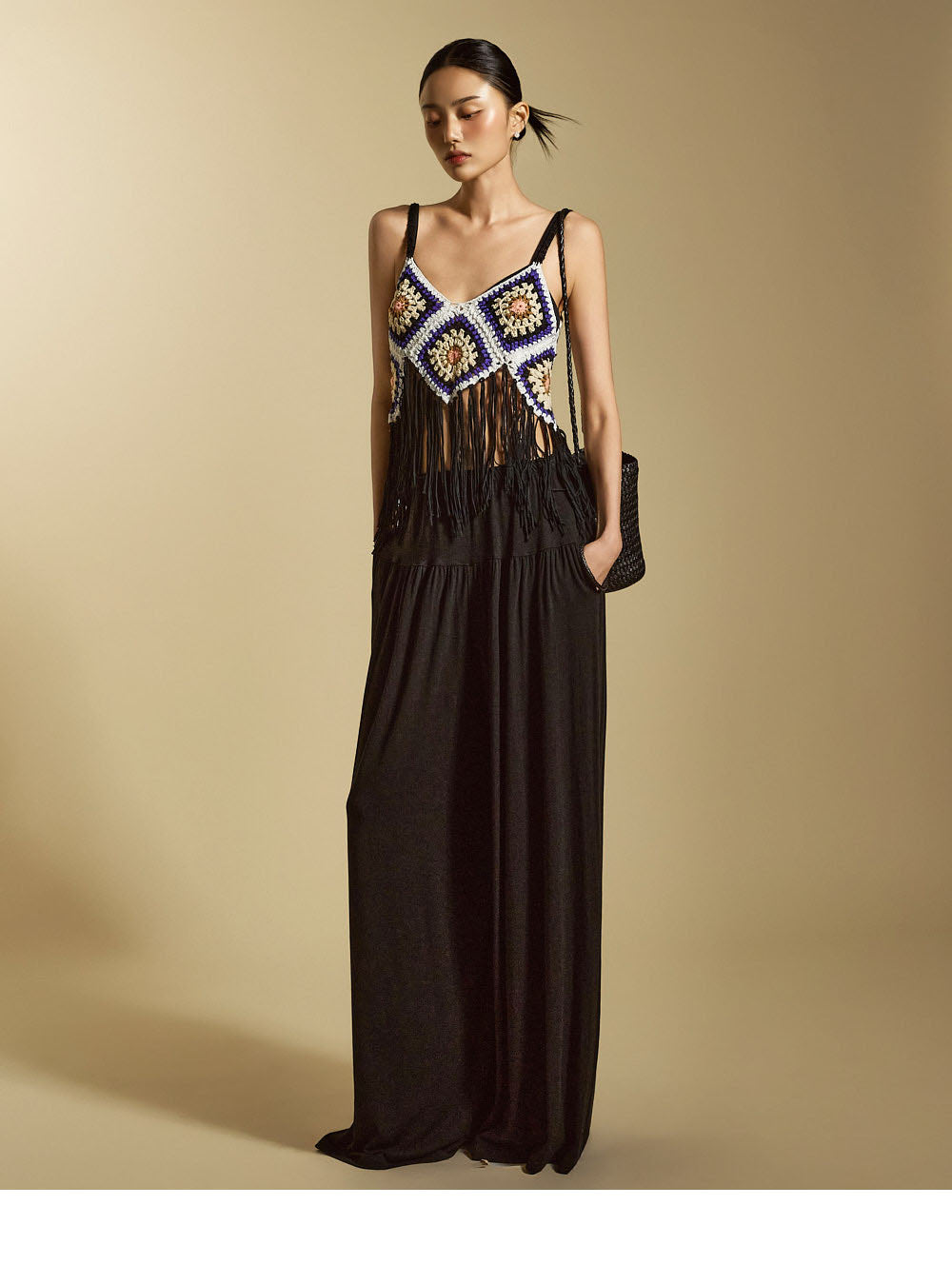 下摆处的扭纱细节增添了独特、引人注目的感觉。