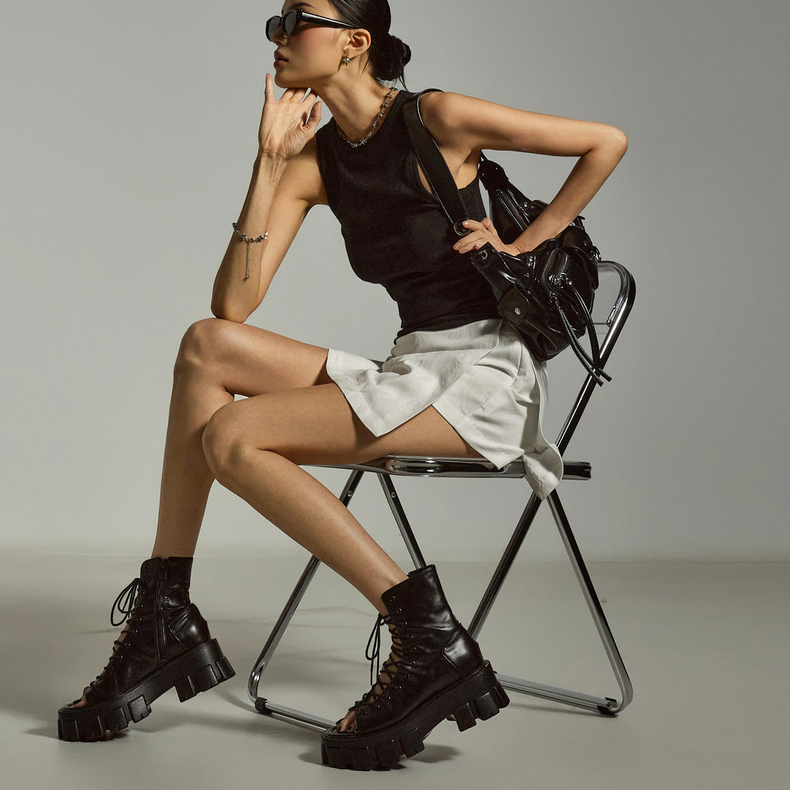 模特身高 171 厘米,穿均码黑色衣服。