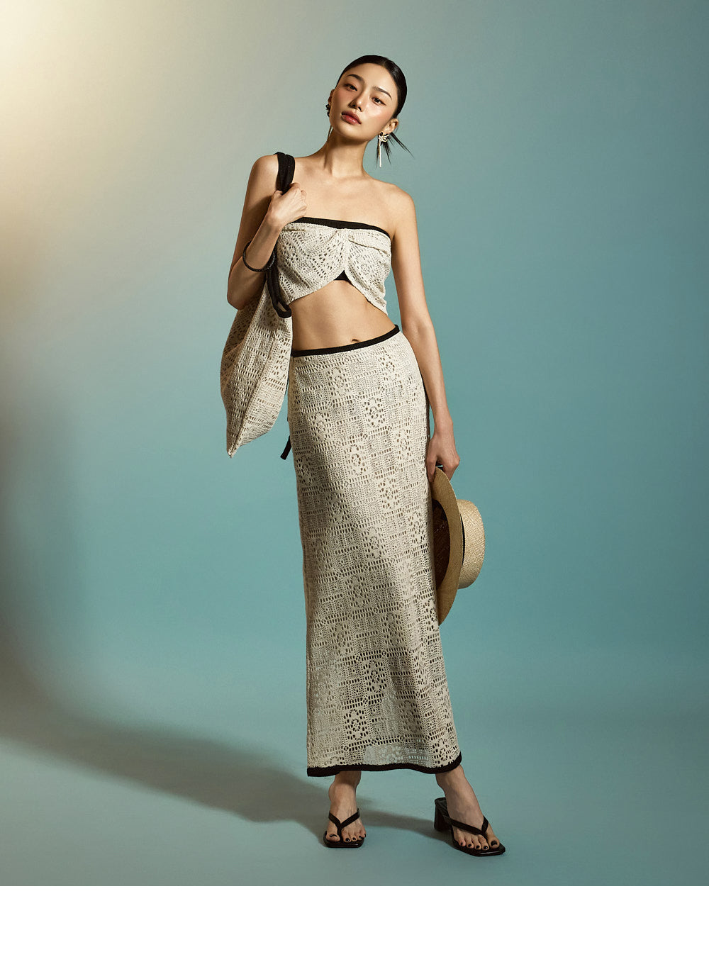对比鲜明的针织纹理增添了独特的触感,