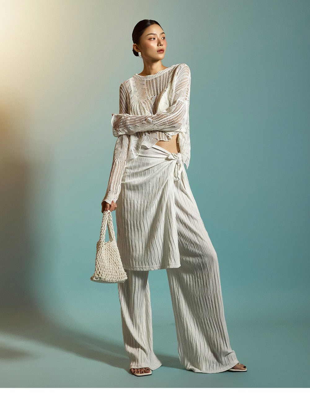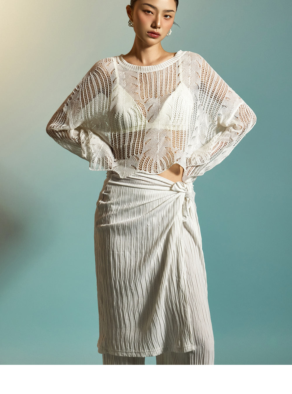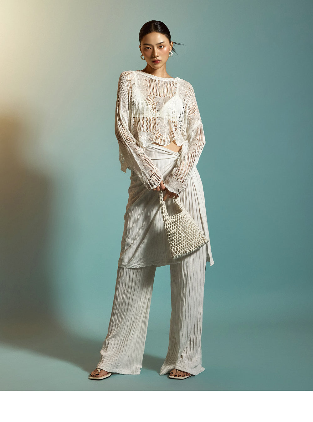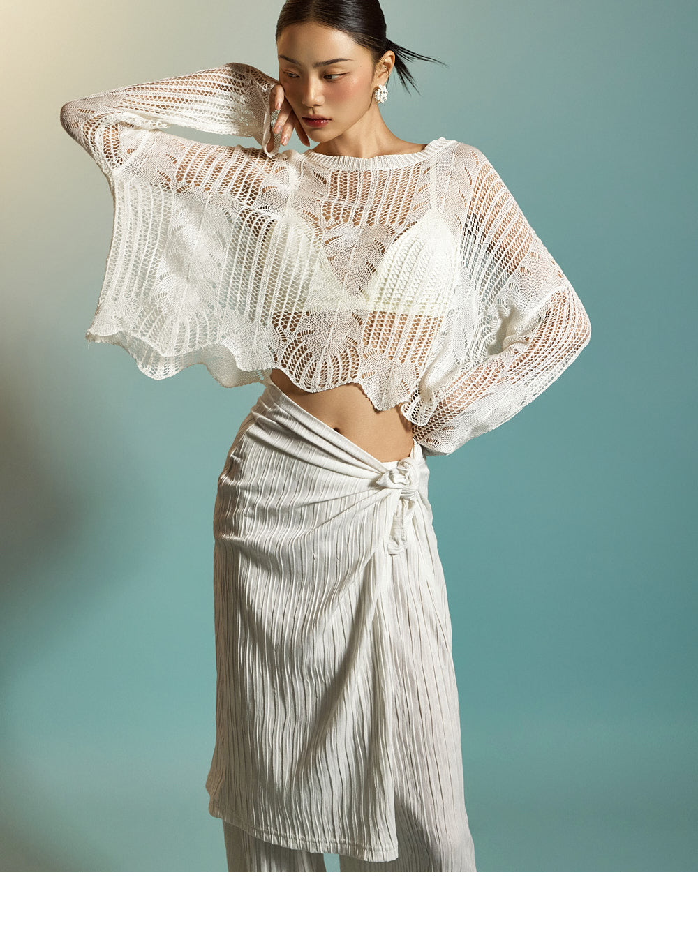 这款网状透明针织上衣将度假氛围与日常风格融为一体。