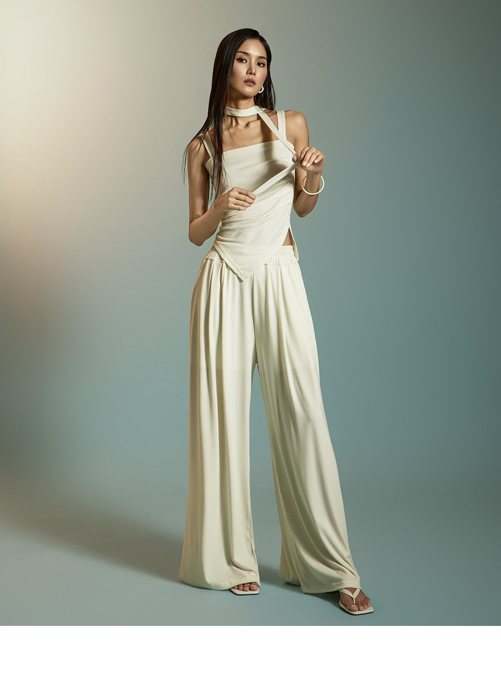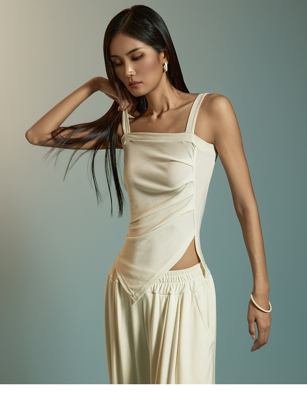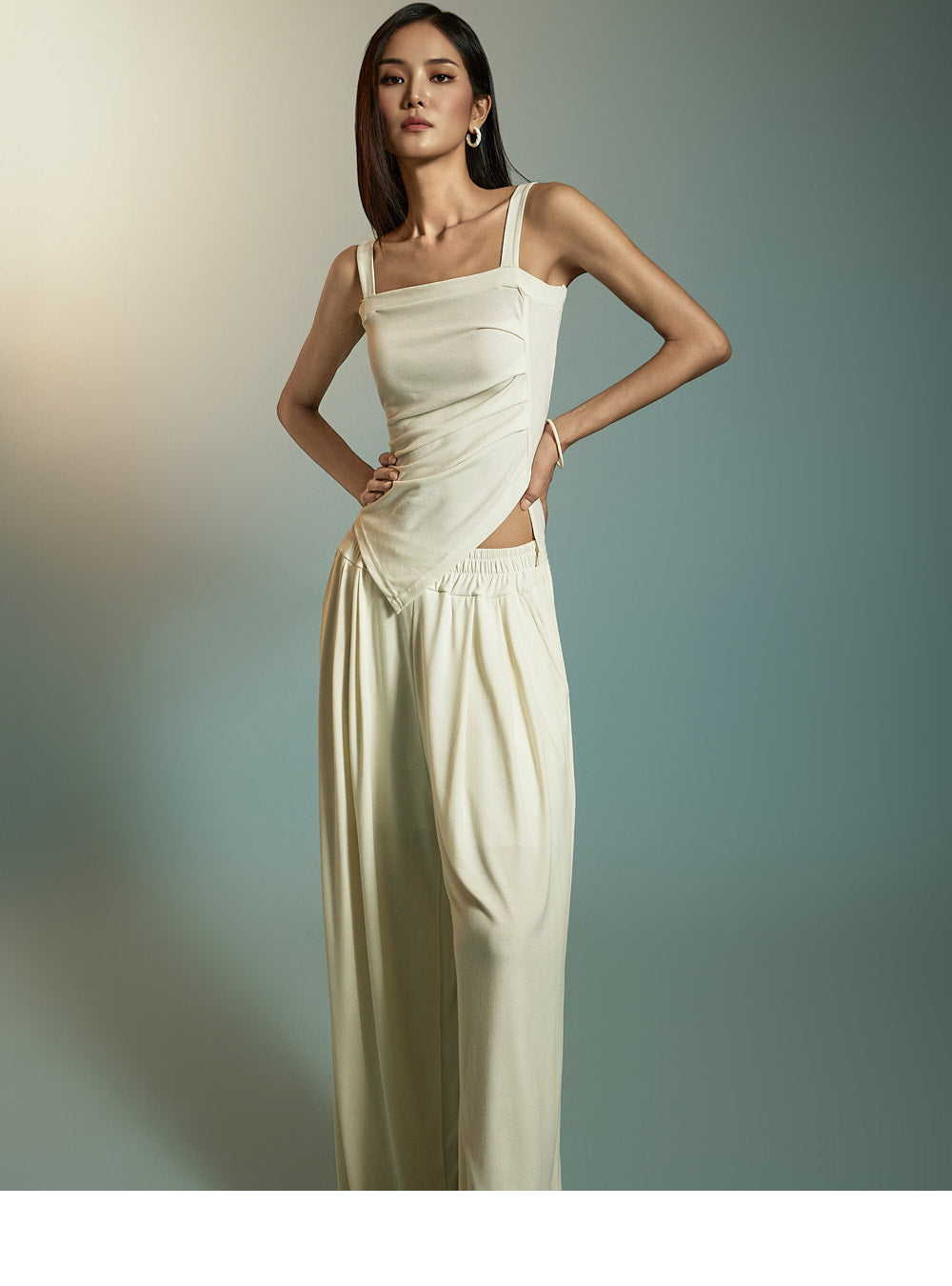 不对称的下摆和修身剪裁凸显了女性的轮廓。