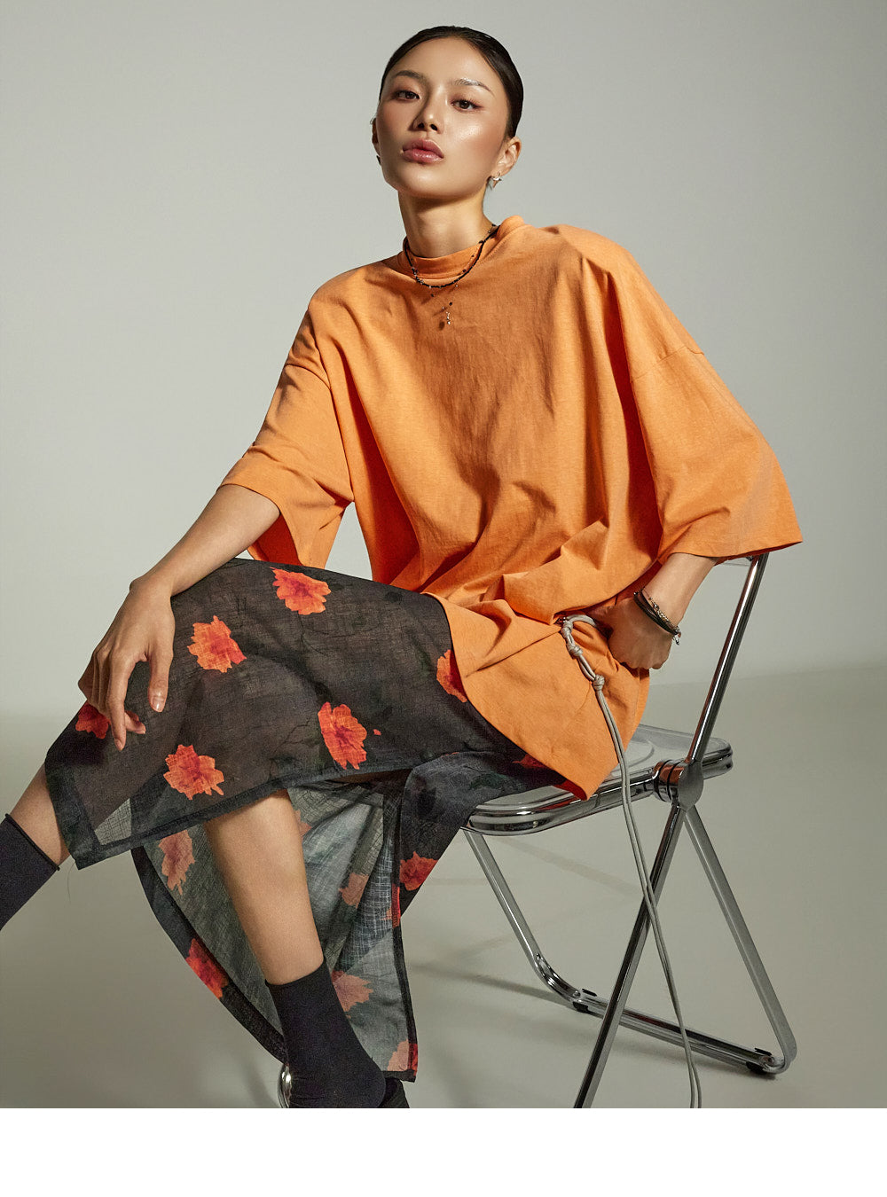 This is a pigment-dyed padded top with a casual and relaxed vibe.