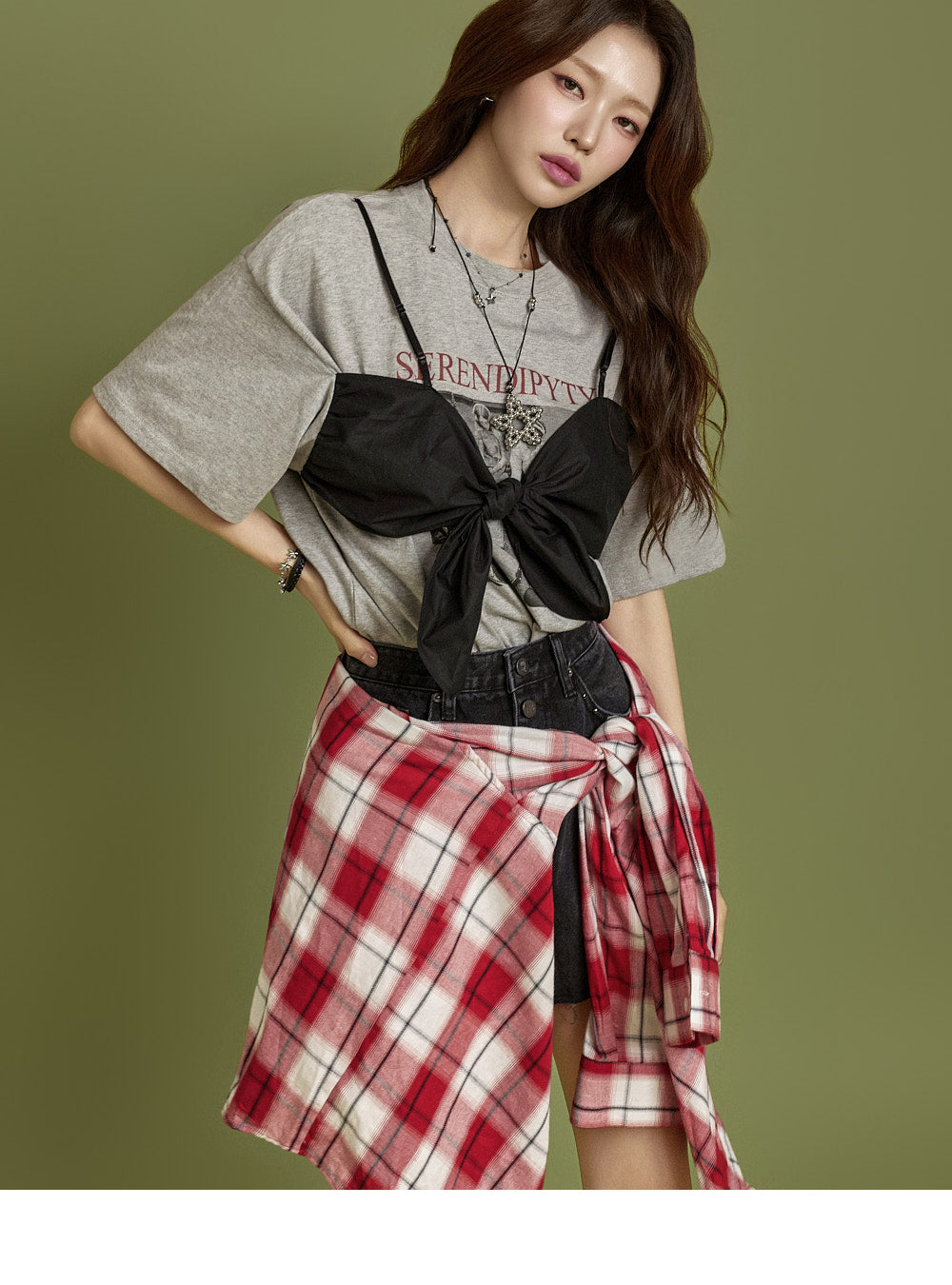 The 171cm model is wearing size ONE in GRAY.