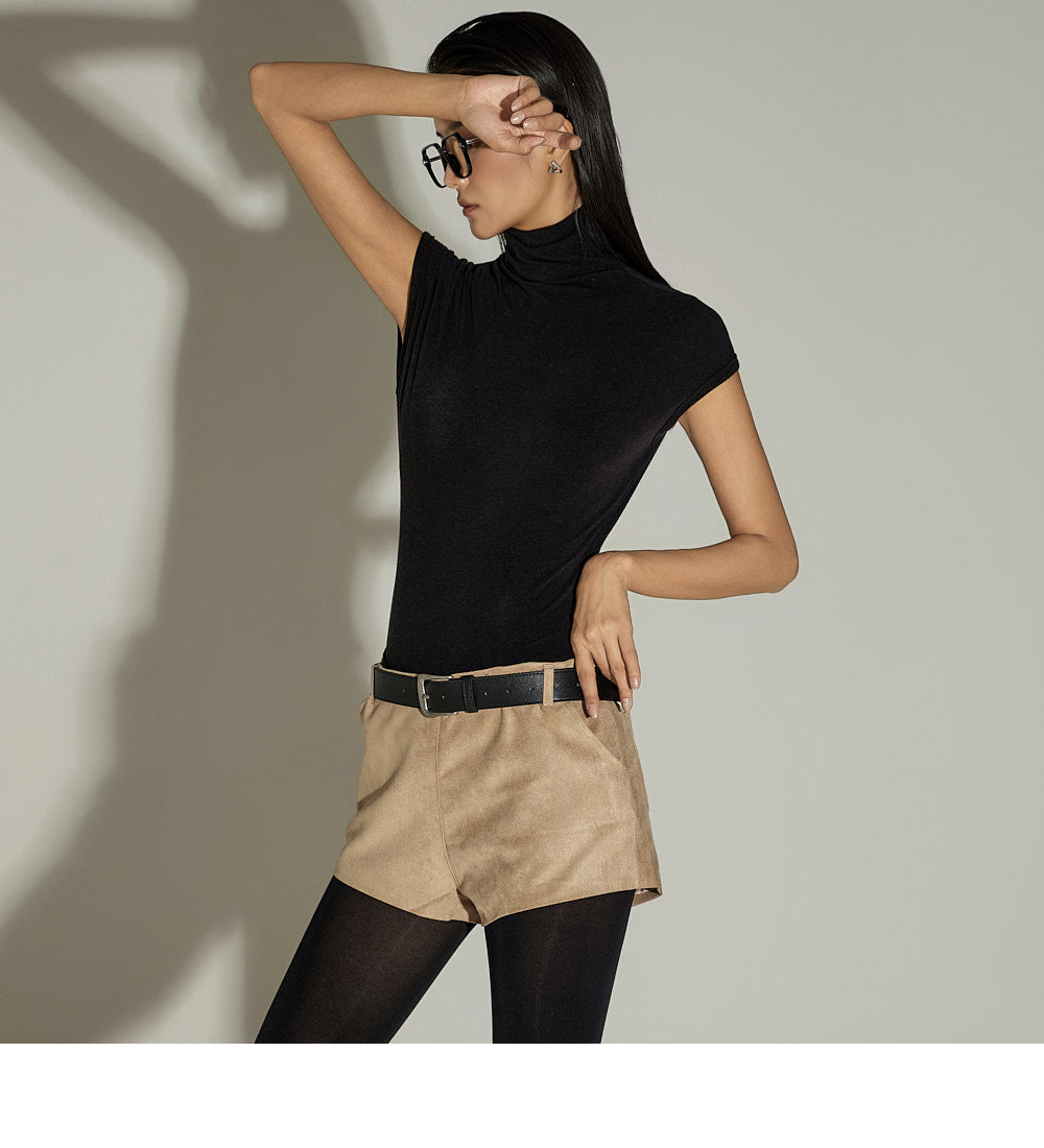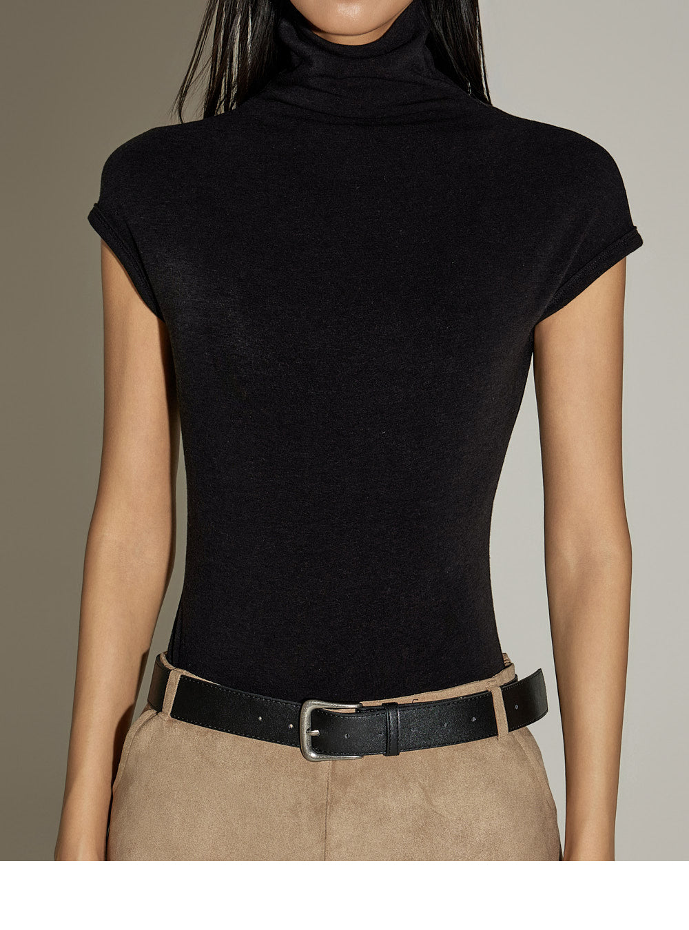 This cap sleeve turtleneck top is perfect for everyday wear.