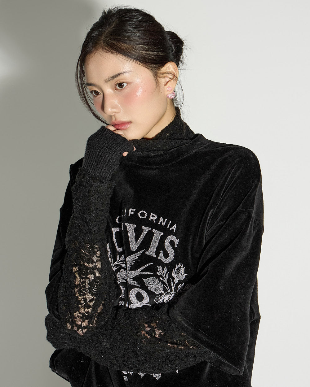 and the semi-high neckline neatly defines the face.