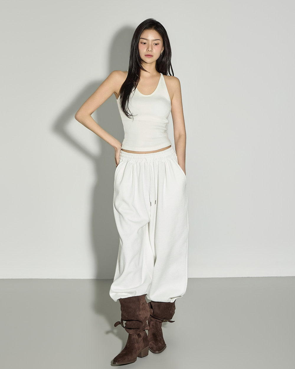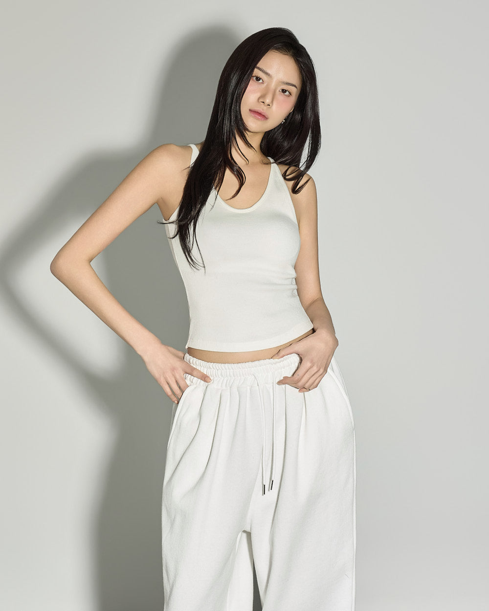 The 171cm model is wearing size ONE in WHITE.
