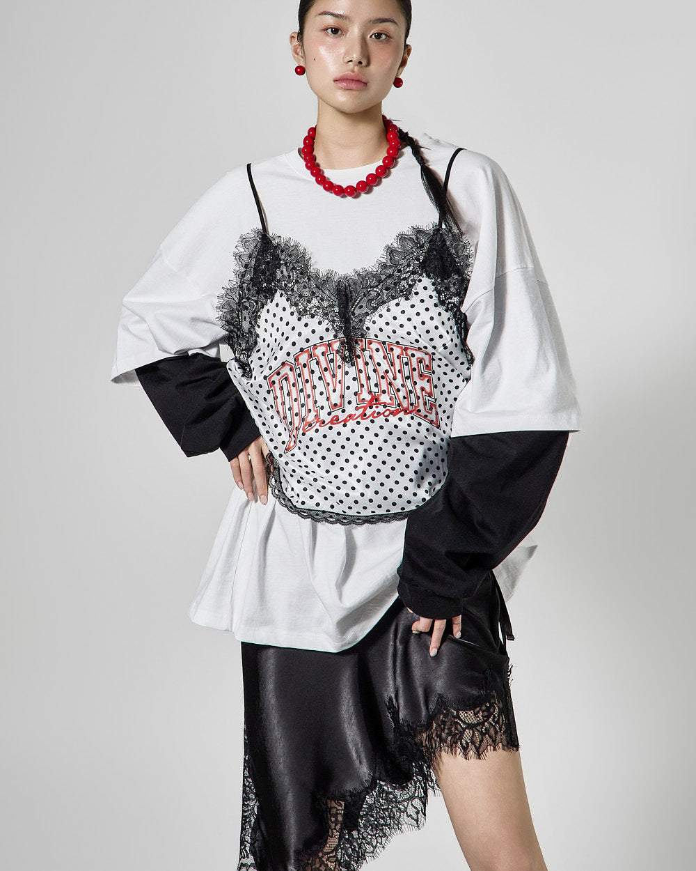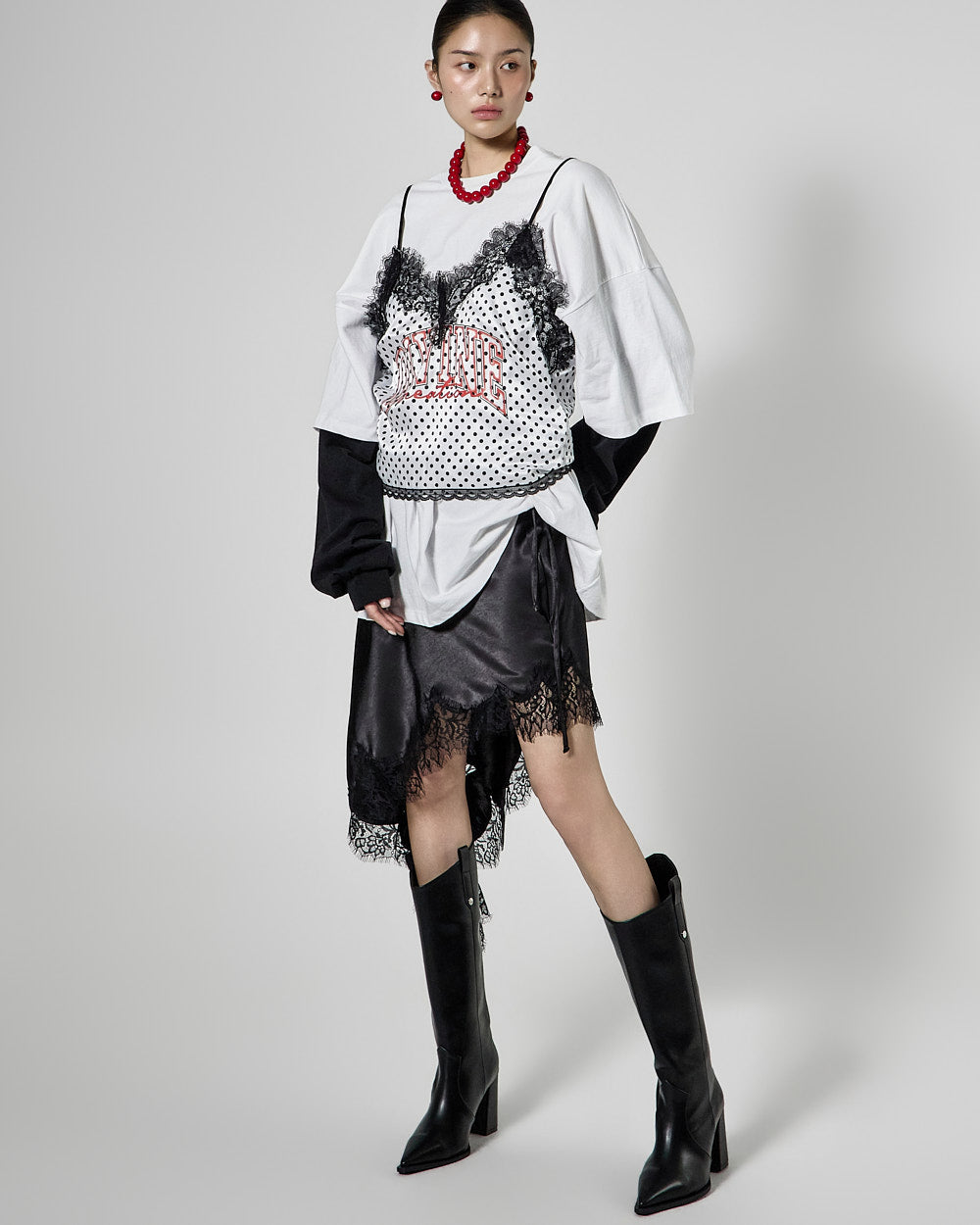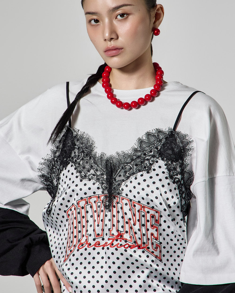 This lovely dot satin sleeveless top has a lovely mood.