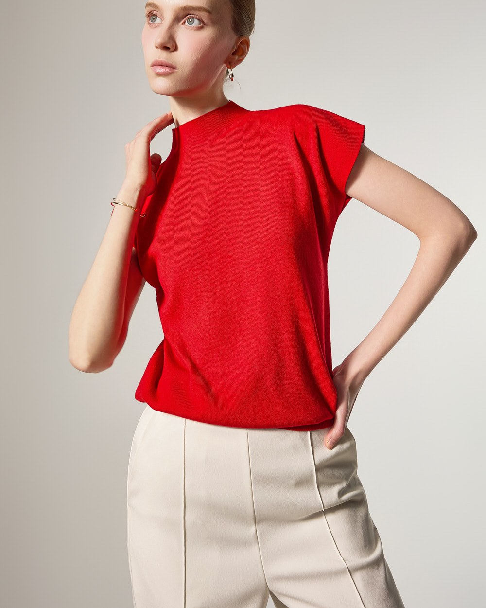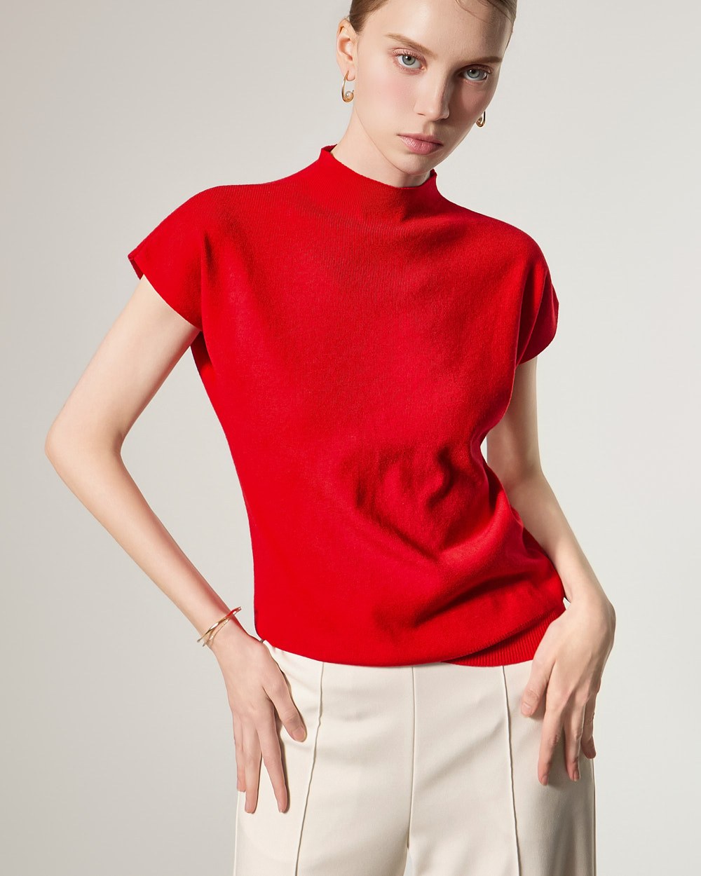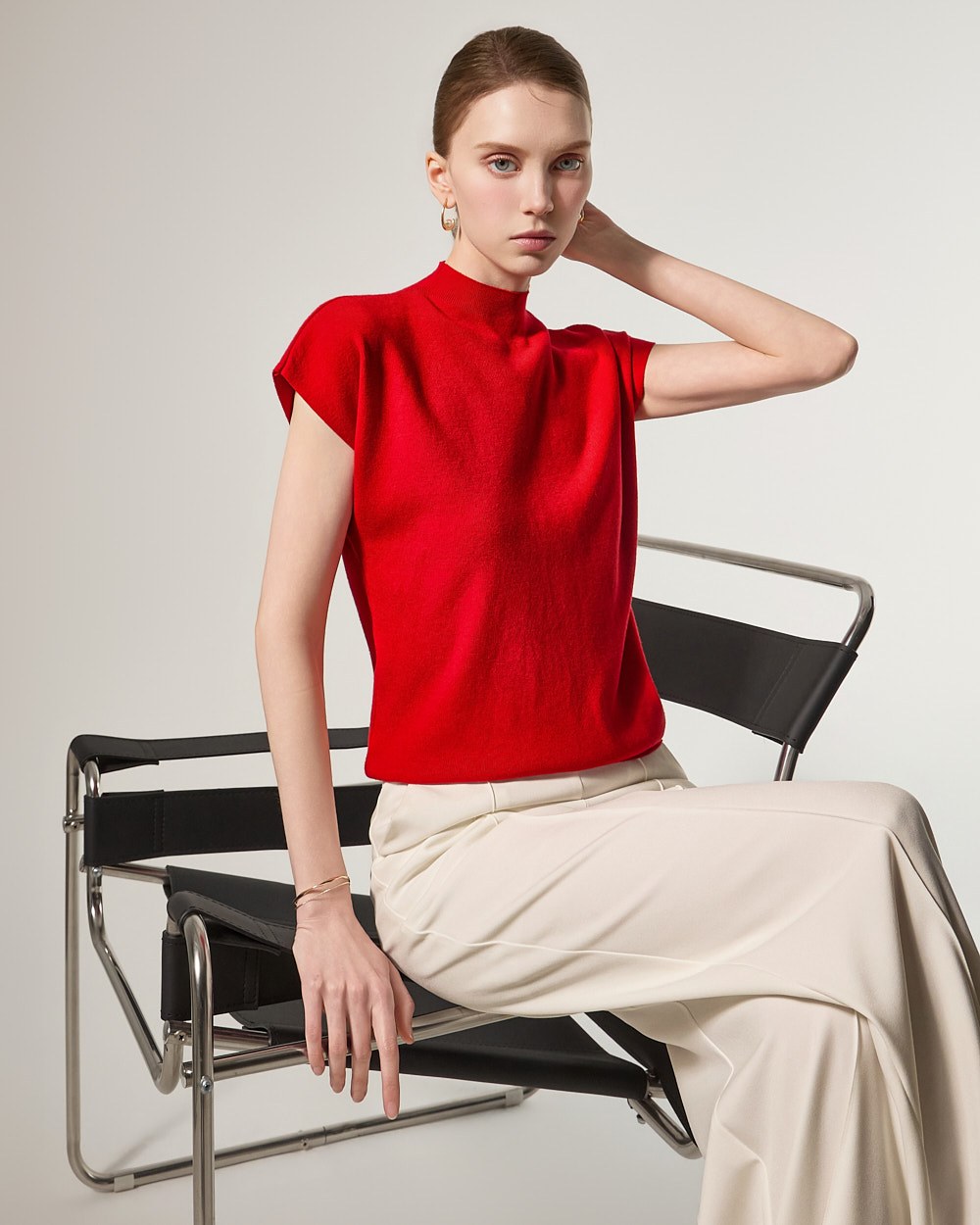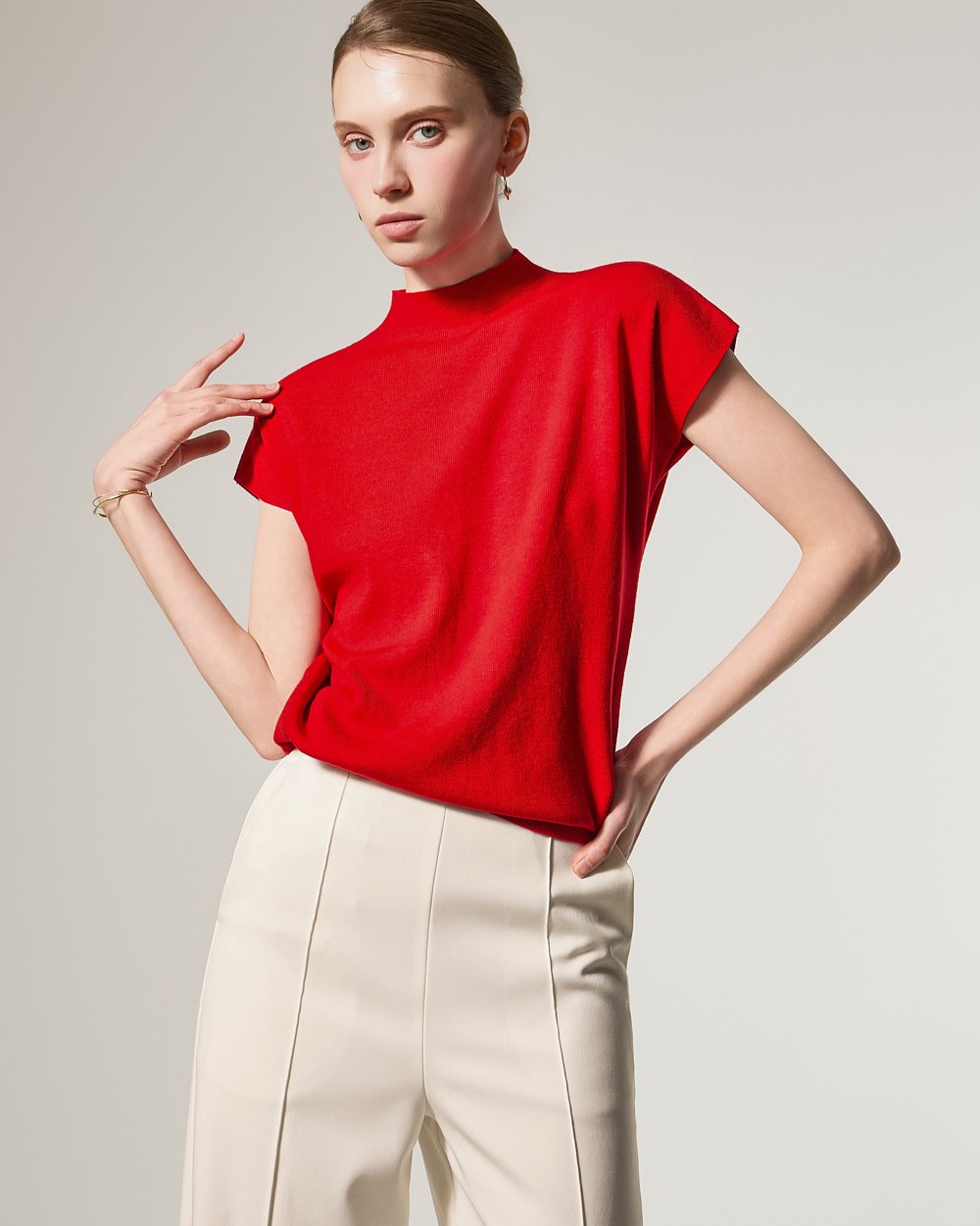 这款针织上衣散发着现代而精致的氛围。