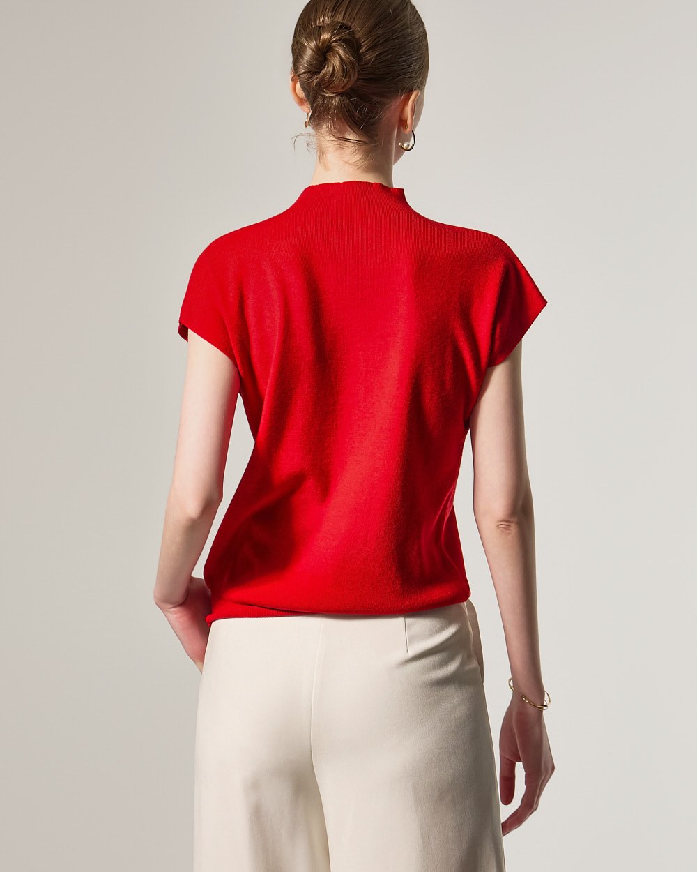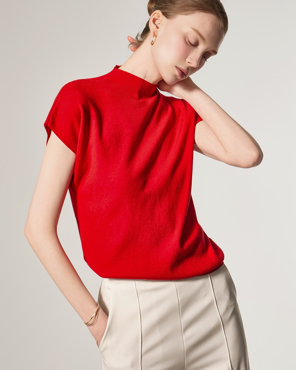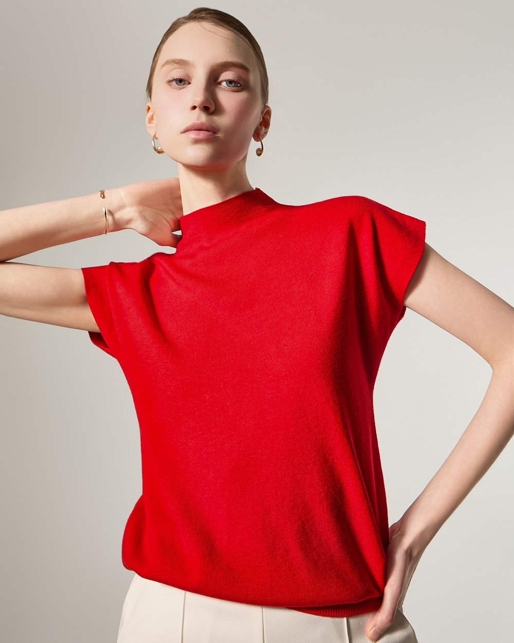 这款针织上衣散发着现代而精致的氛围。