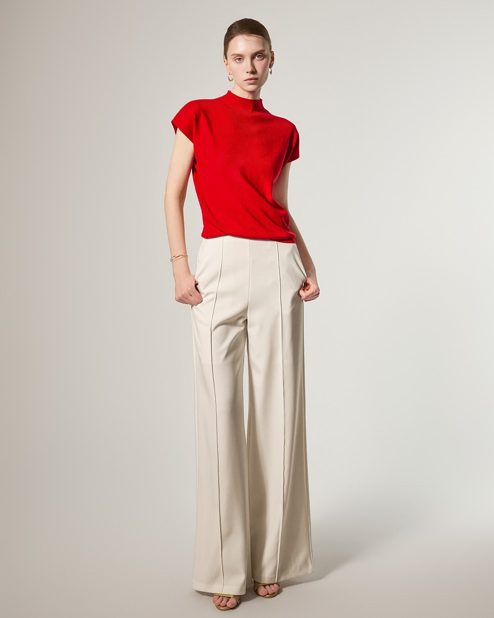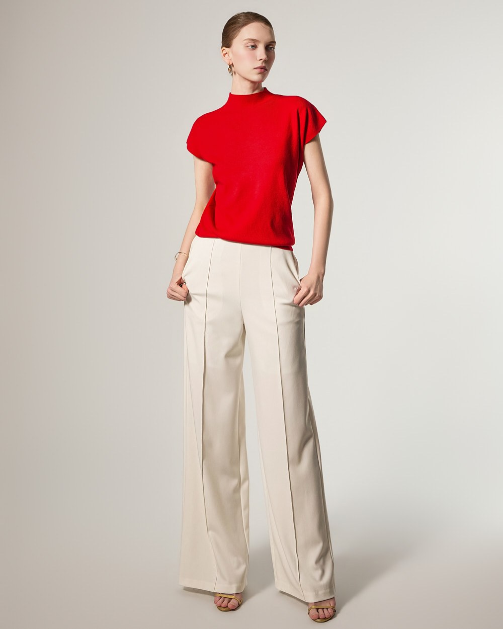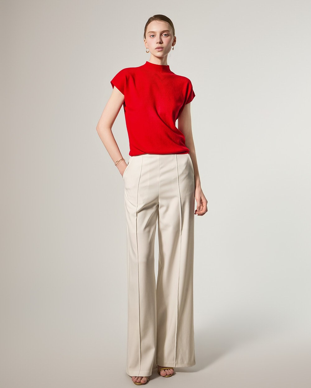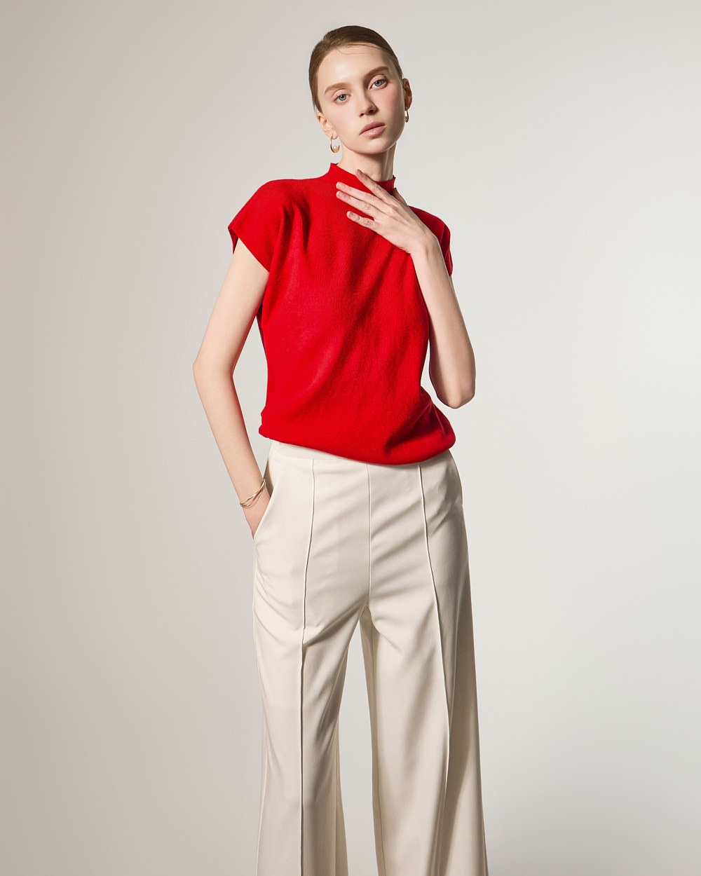 这款针织上衣散发着现代而精致的氛围。