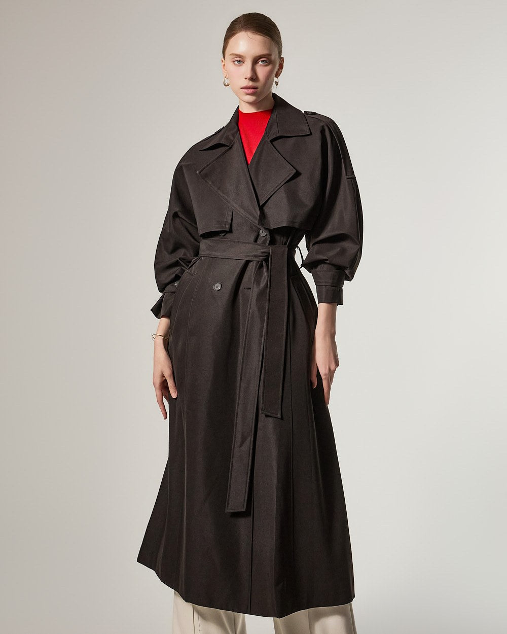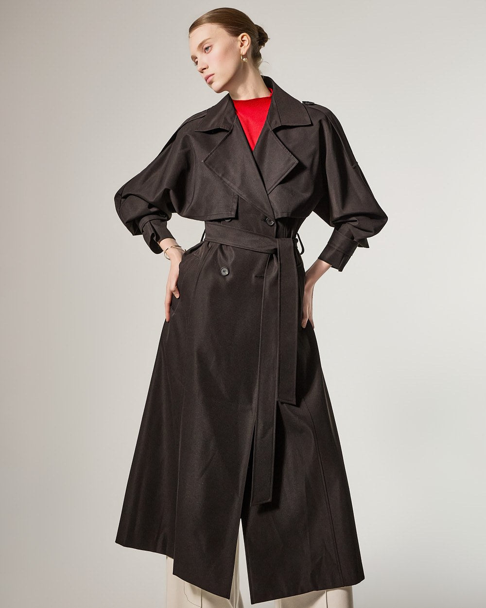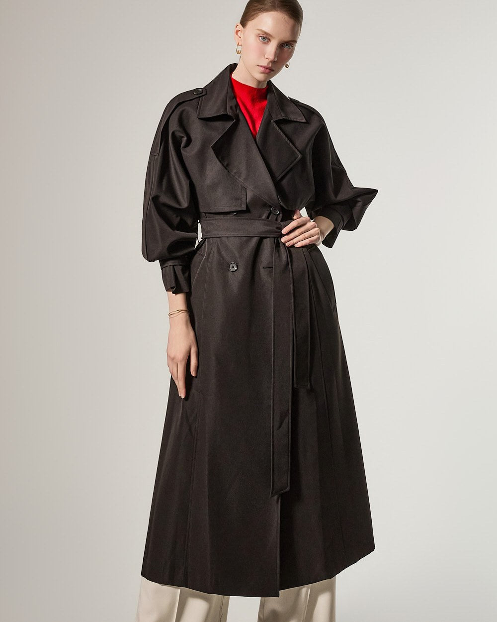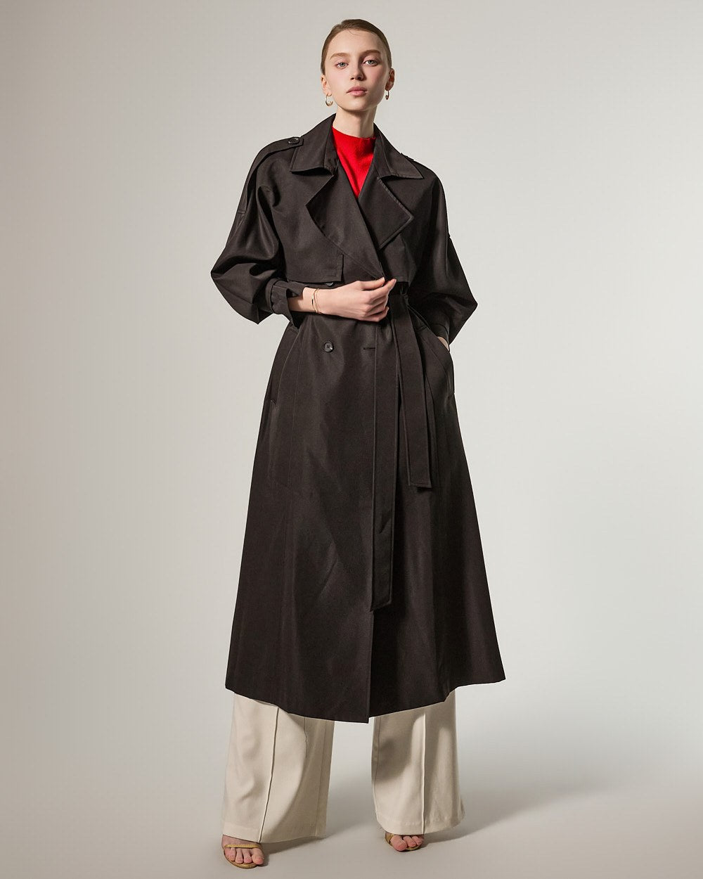 增添优雅气息,而插肩袖细节自然地勾勒出肩部线条。