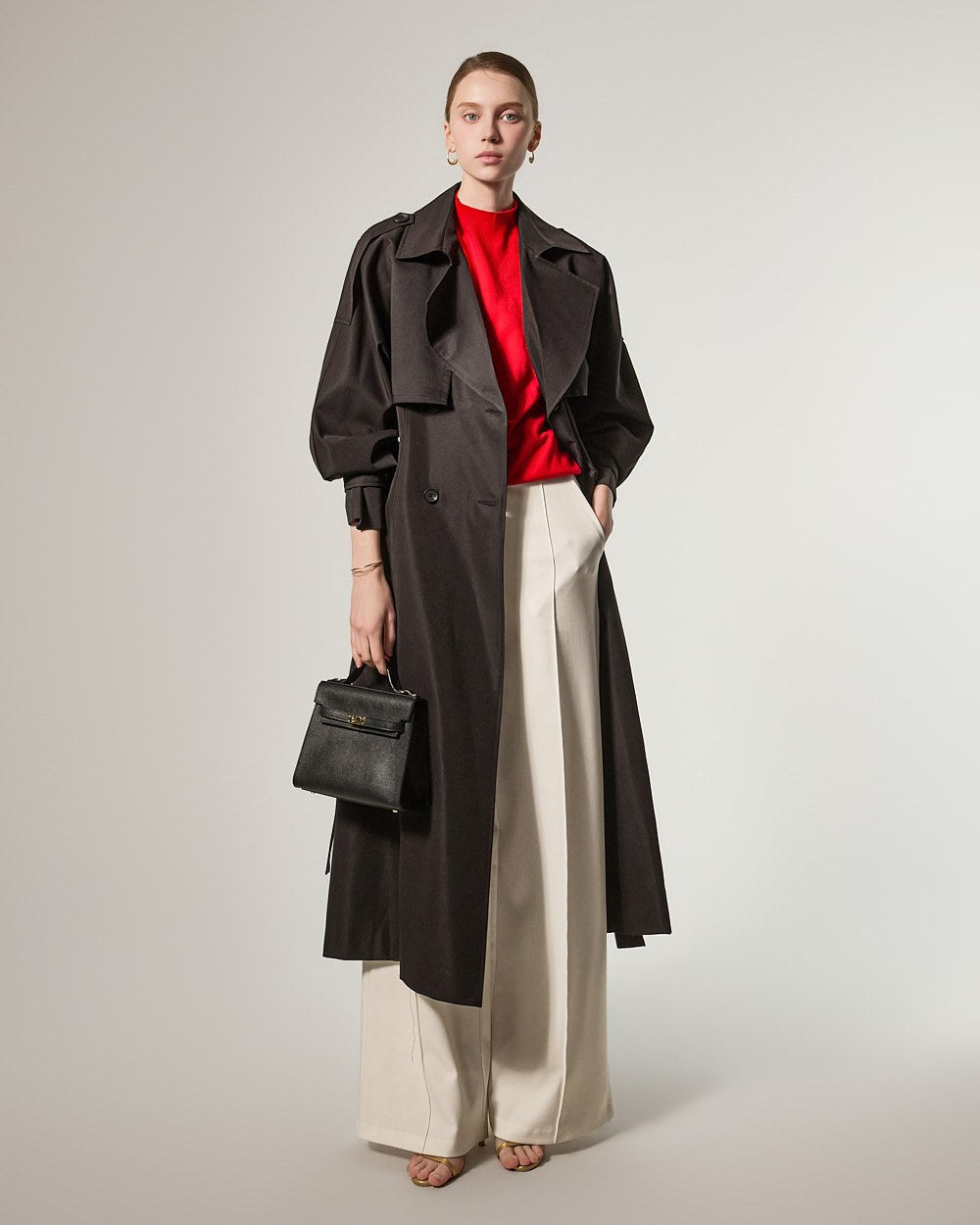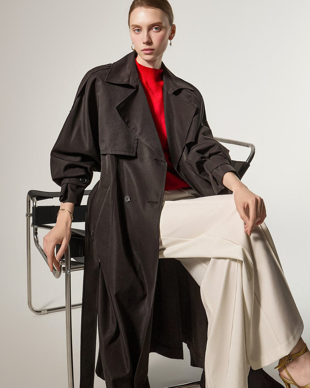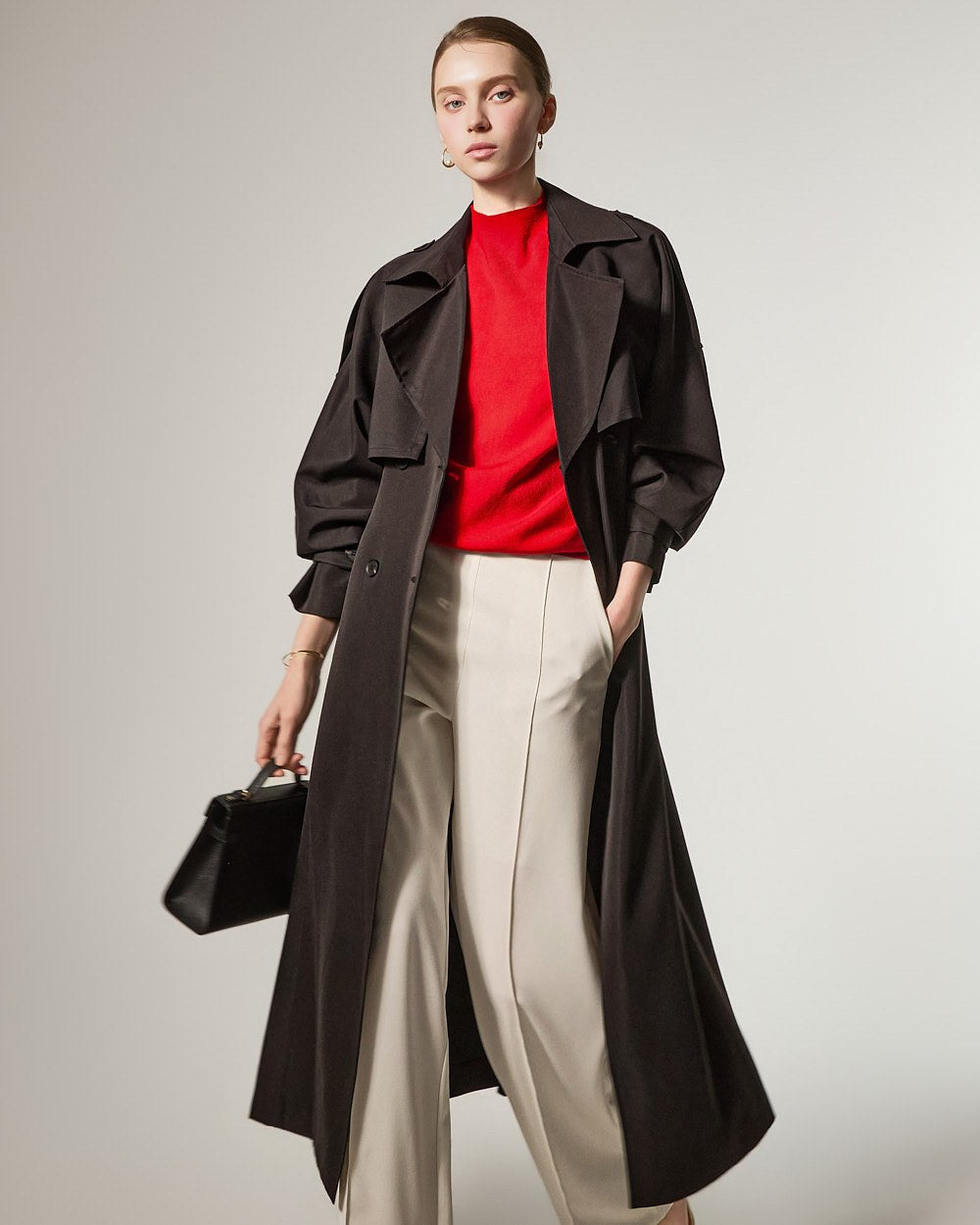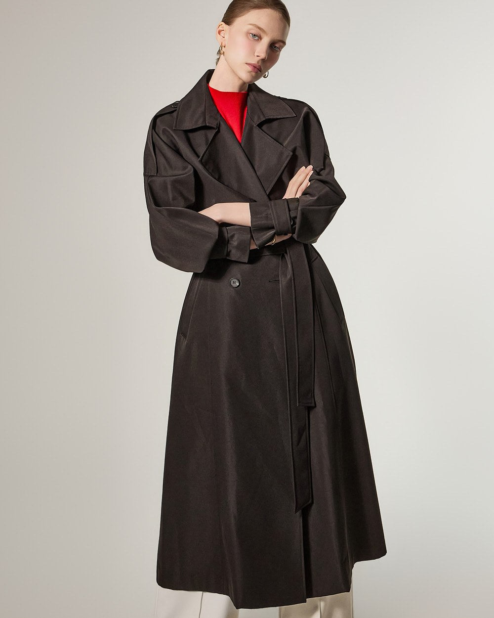 增添优雅气息,而插肩袖细节自然地勾勒出肩部线条。
