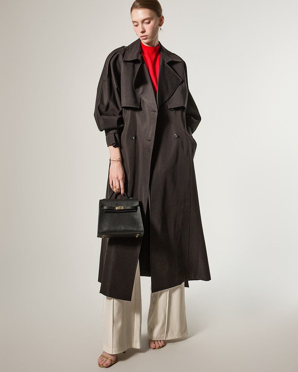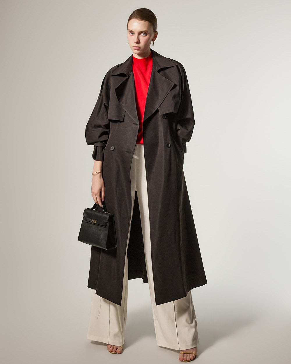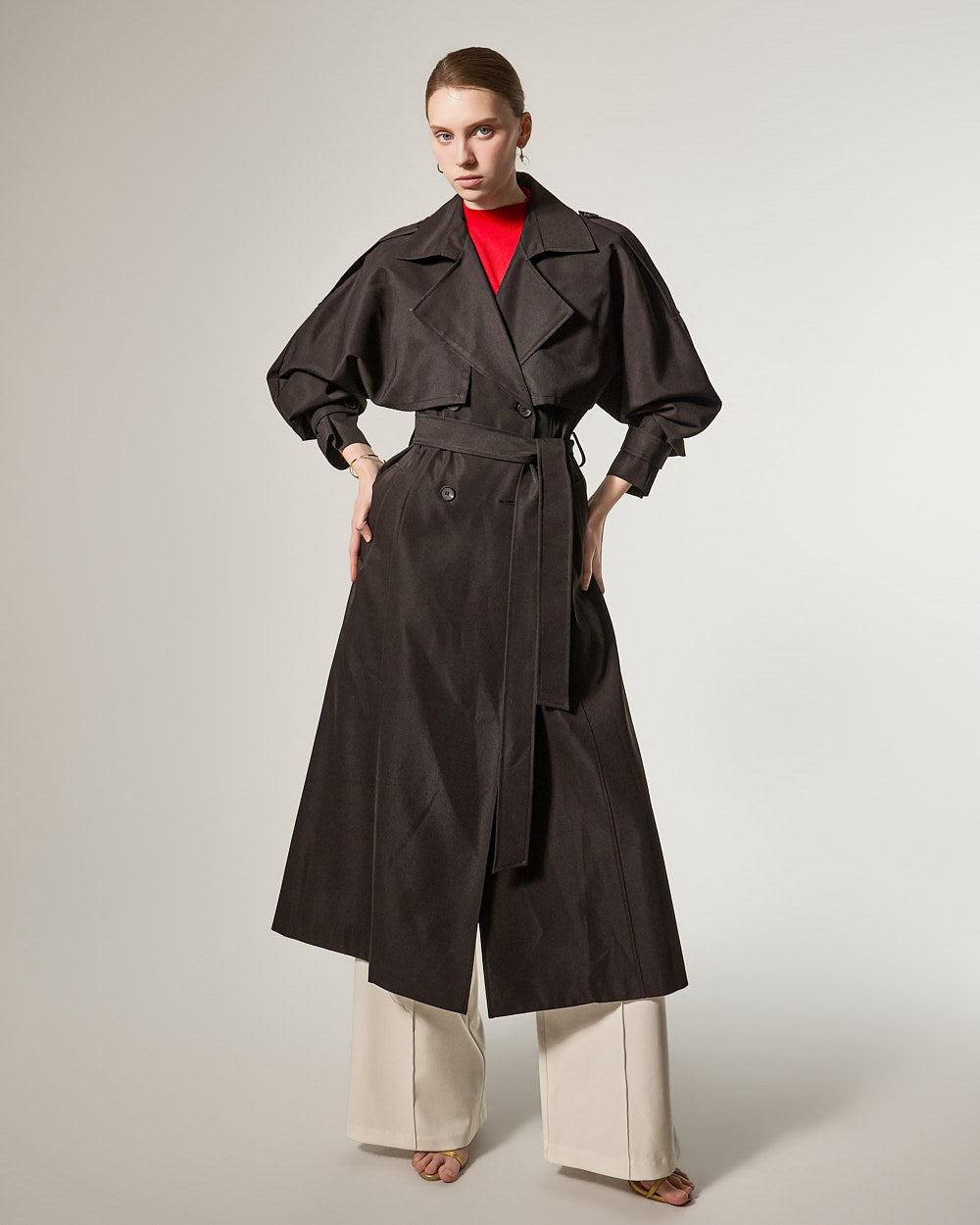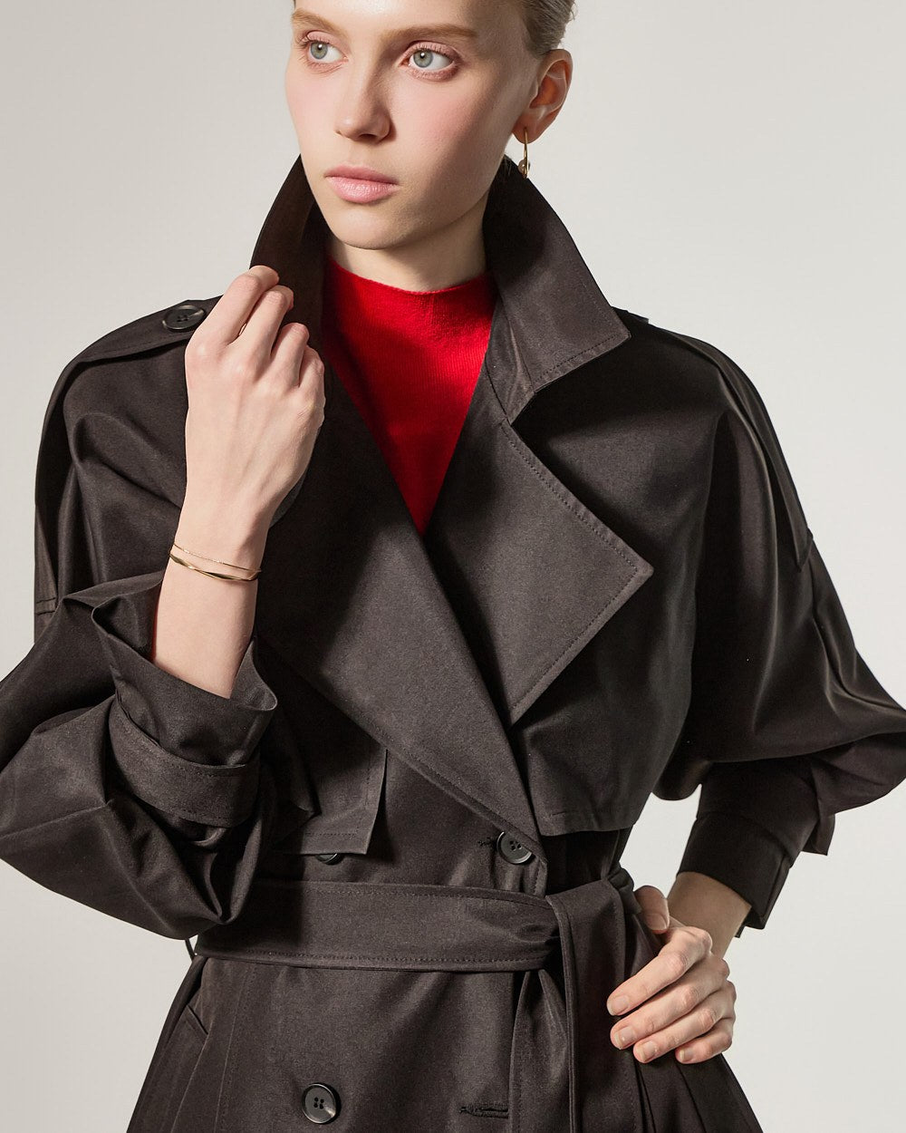 增添优雅气息,而插肩袖细节自然地勾勒出肩部线条。