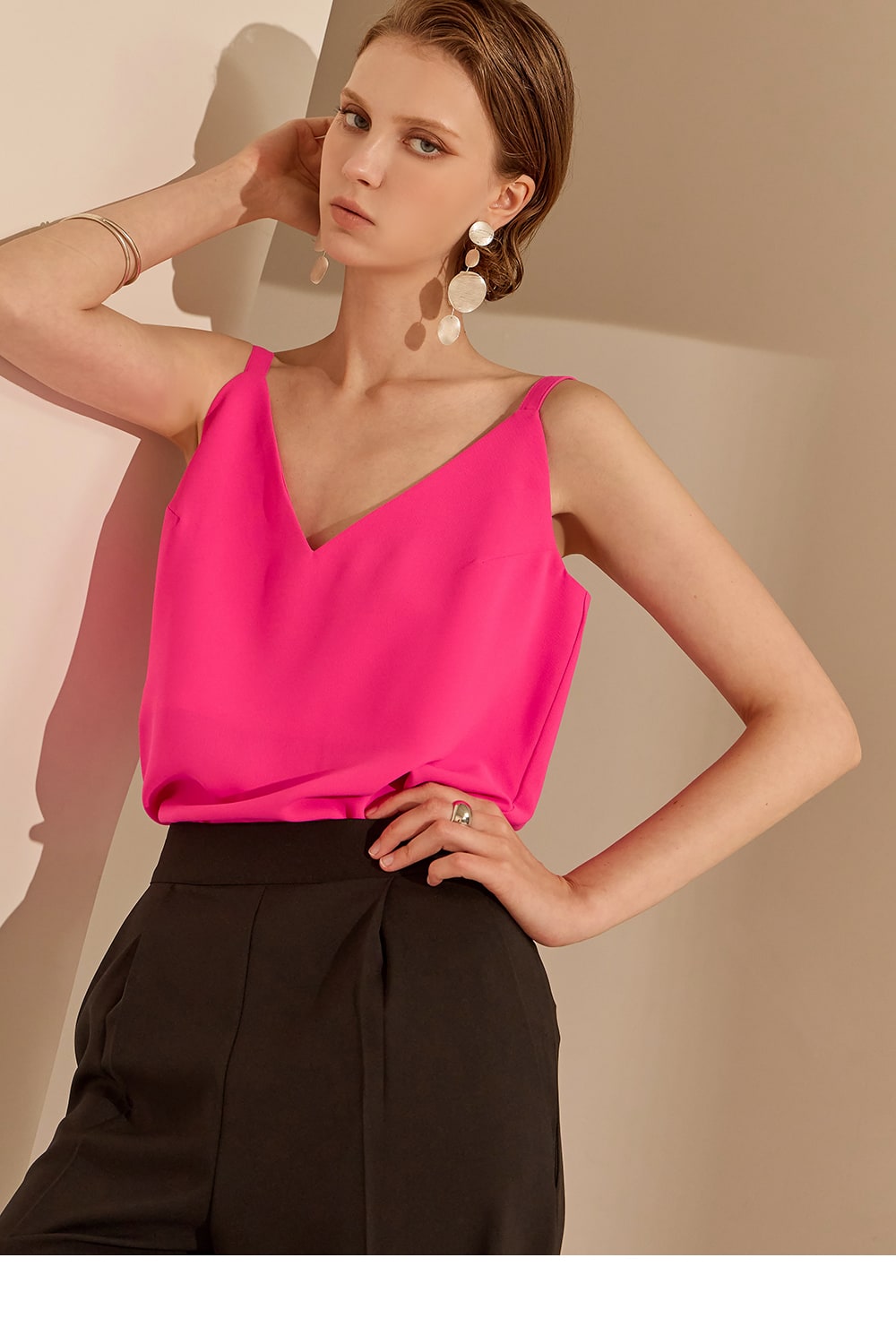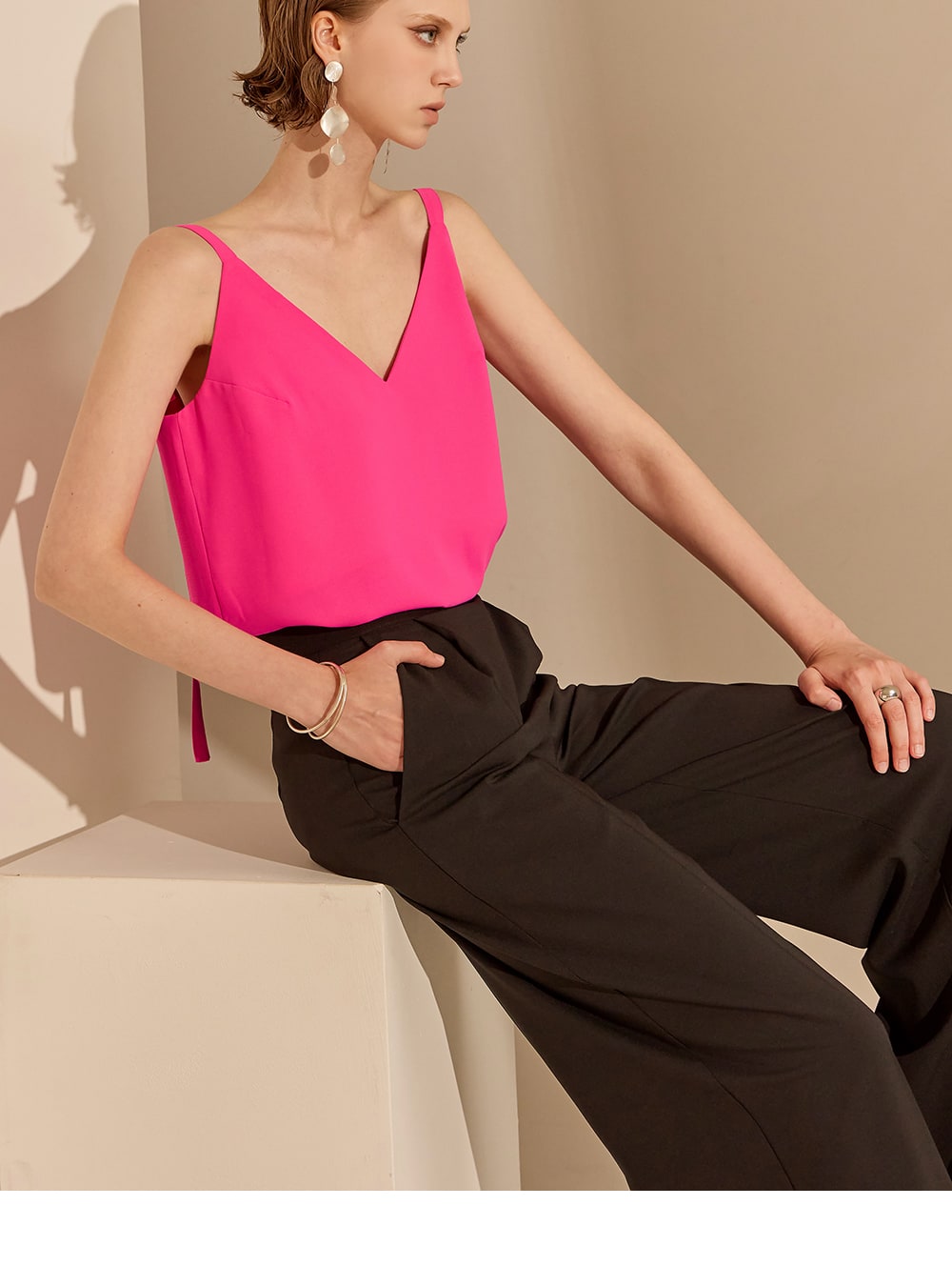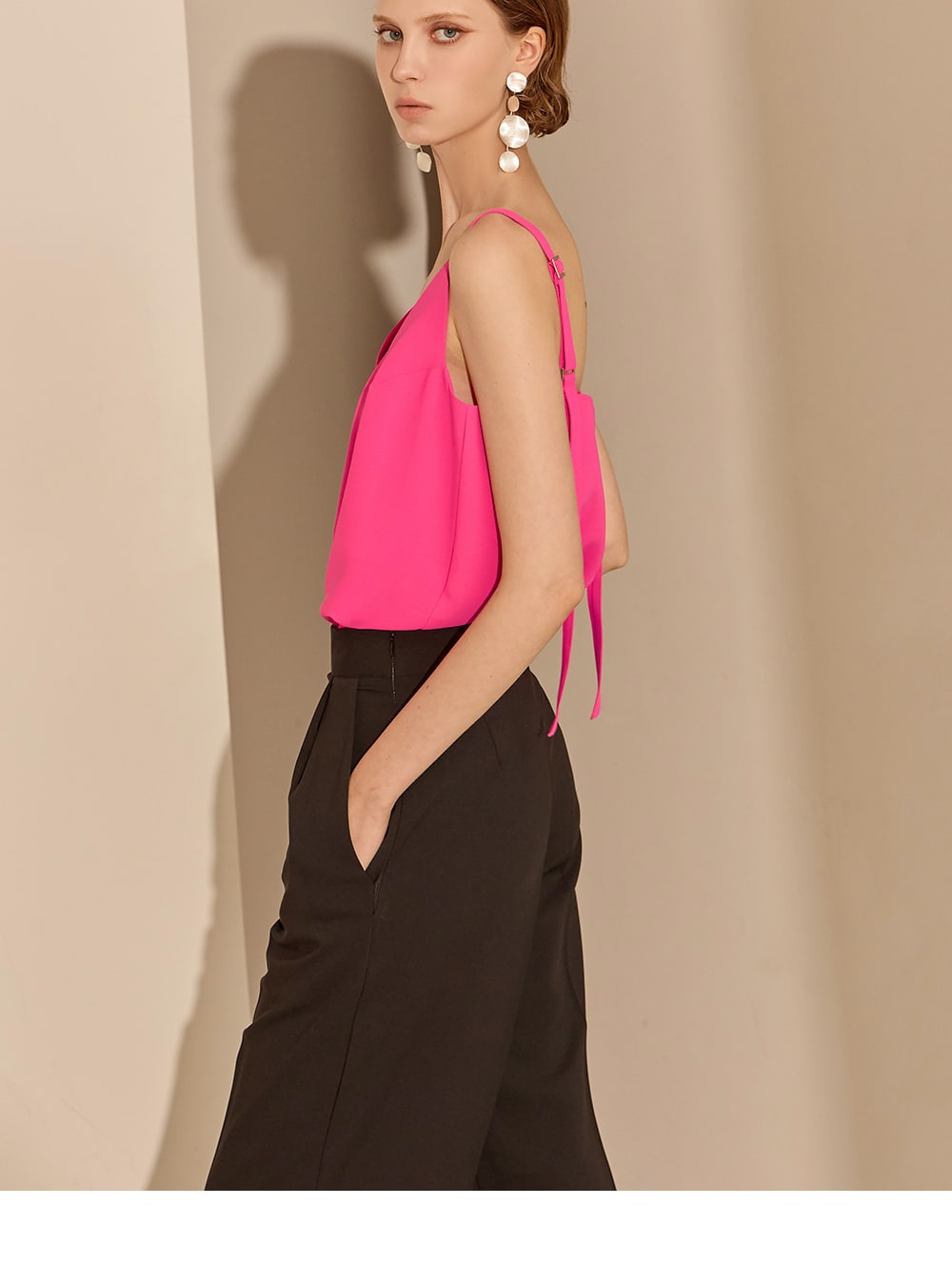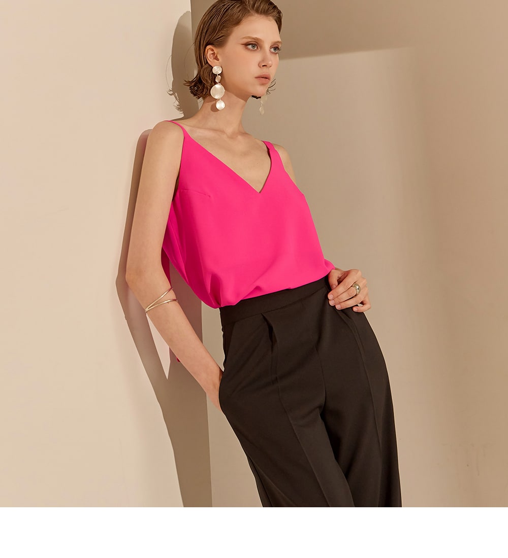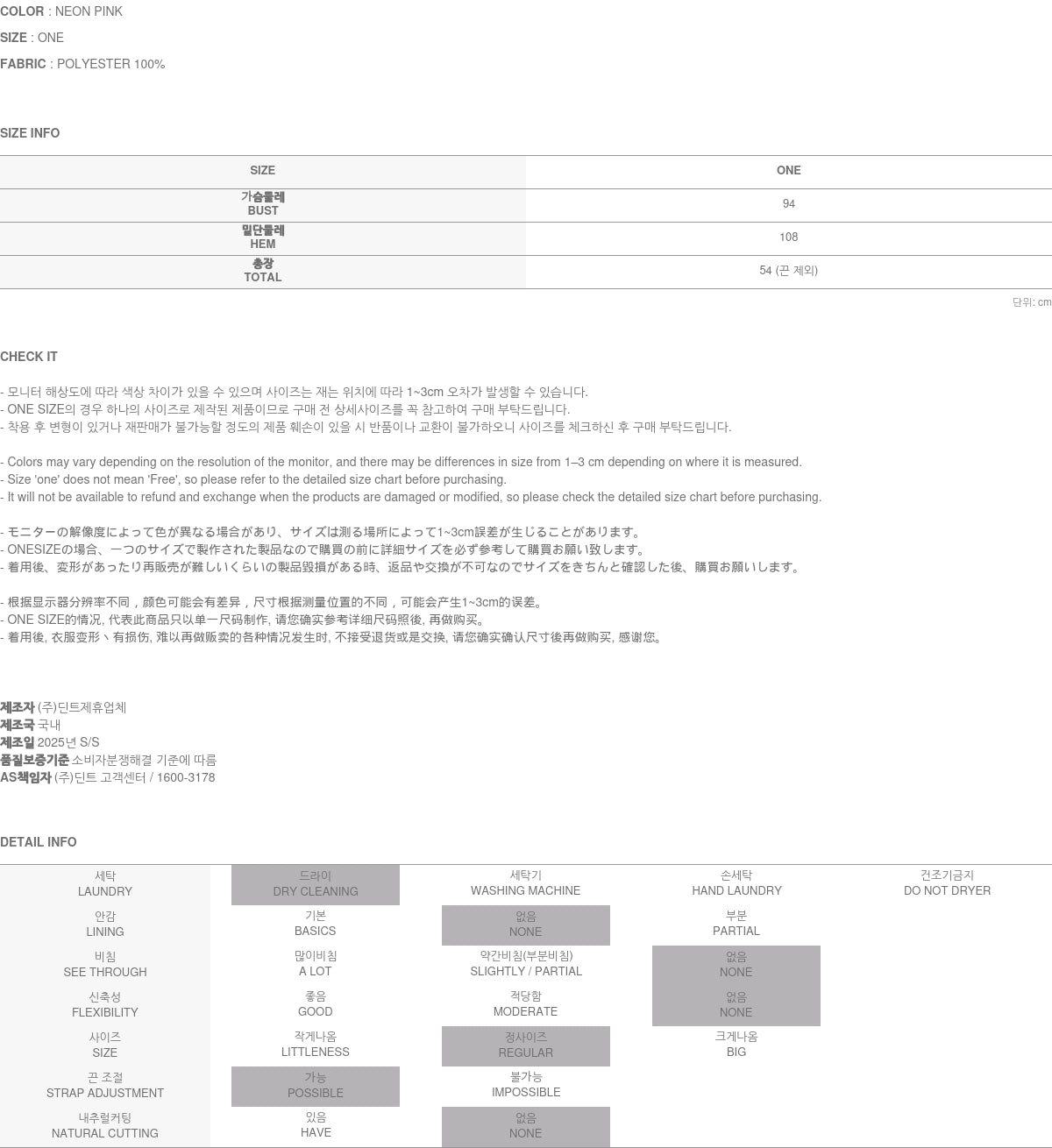 模特身高 174 厘米,穿着均码的霓虹粉色服装。