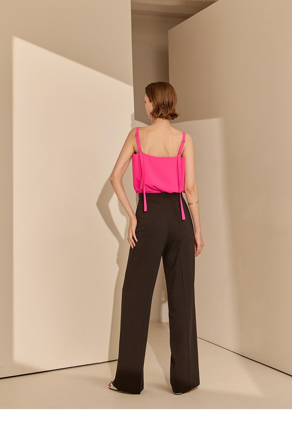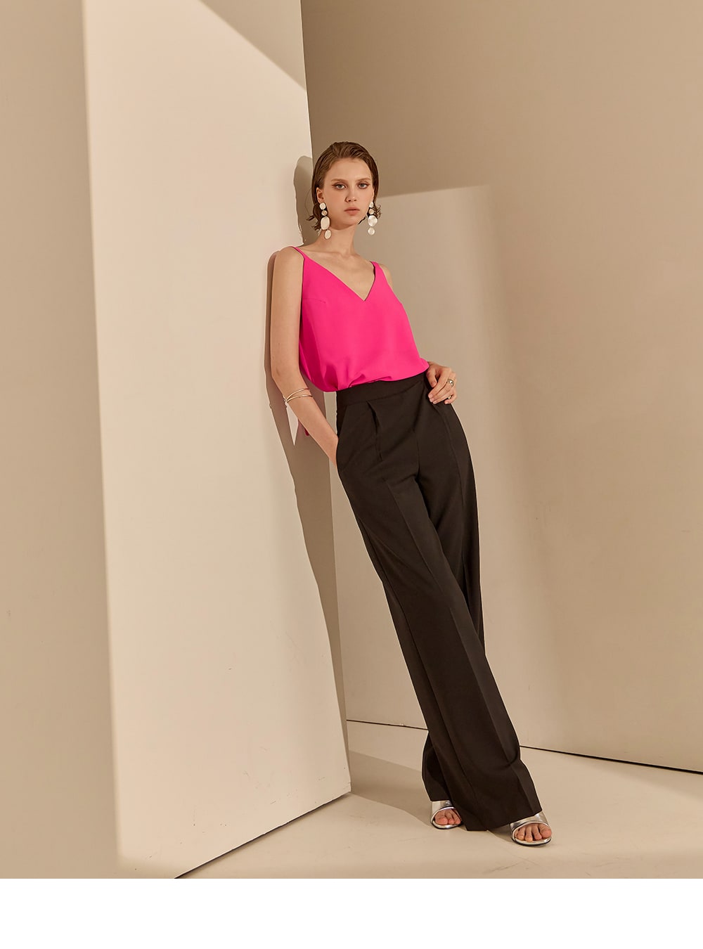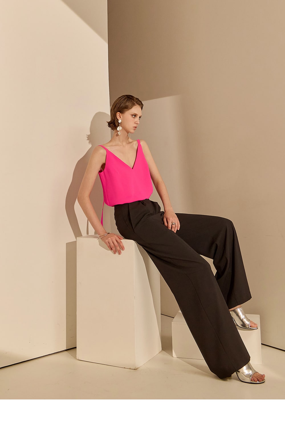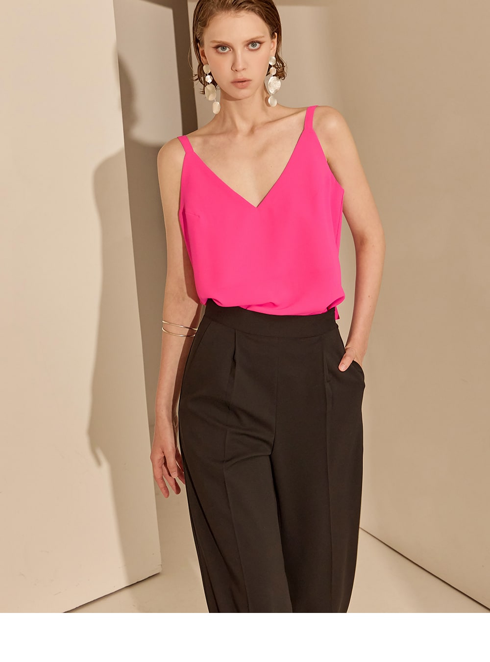 模特身高 174 厘米,穿着均码的霓虹粉色服装。