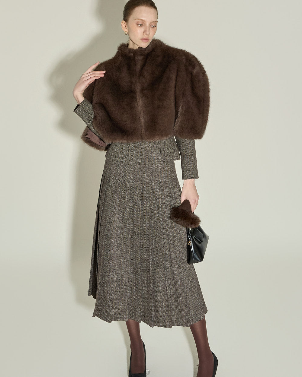 模特身高 172 厘米,穿着 S 码棕色衣服。