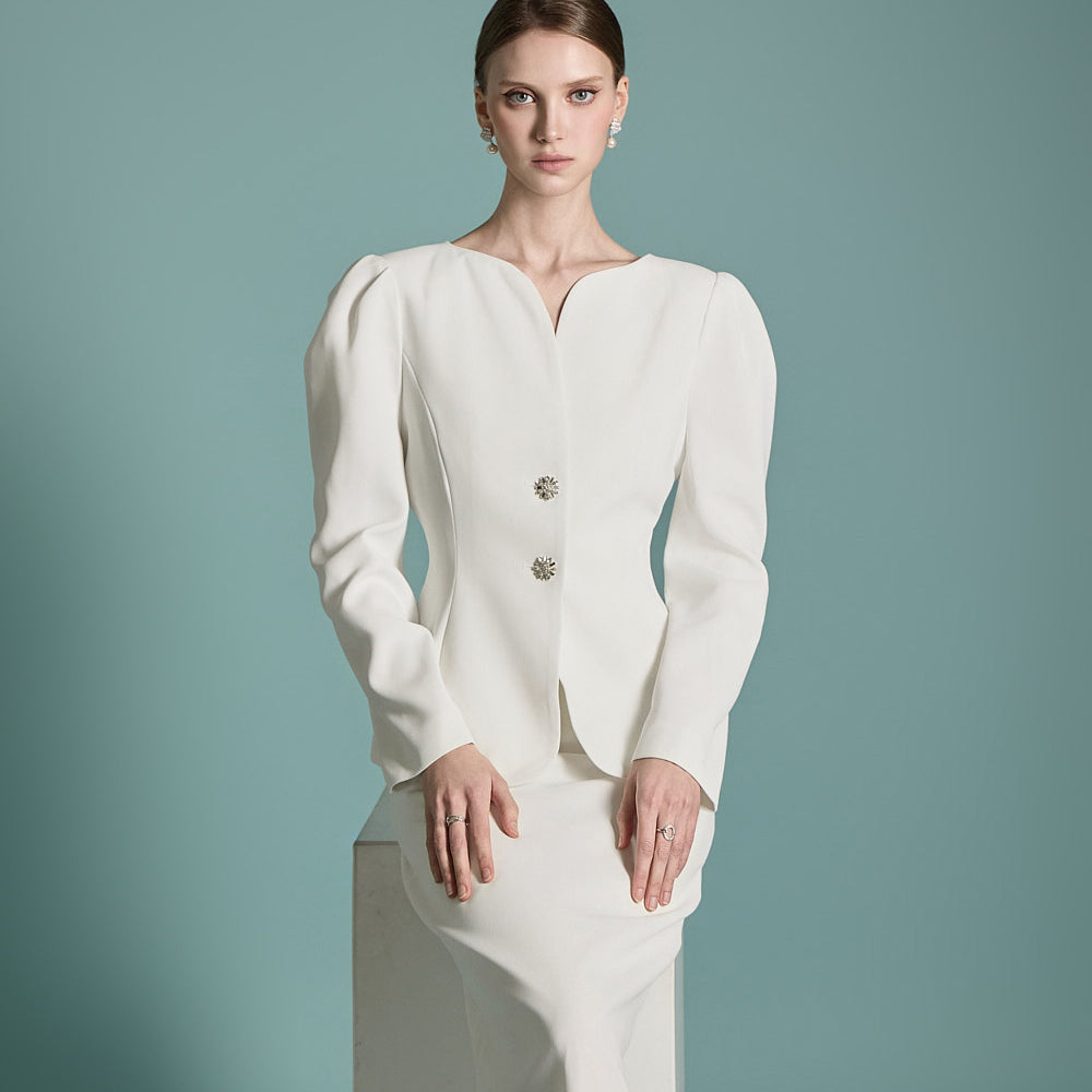 肩部泡泡袖细节则增强了女性的轮廓感。