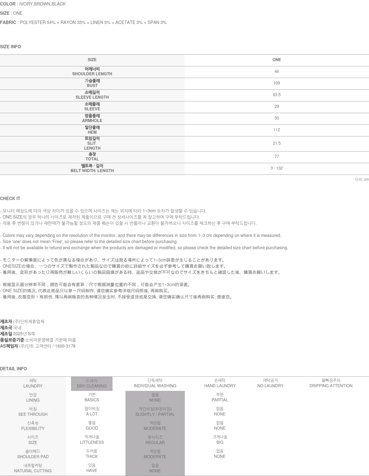 收到退回Dint的商品后,请填写随附的退货申请表,并按照收到时的包装方式重新包装(塑料袋、衣架、按金额赠送)。然后将其寄回Dint。