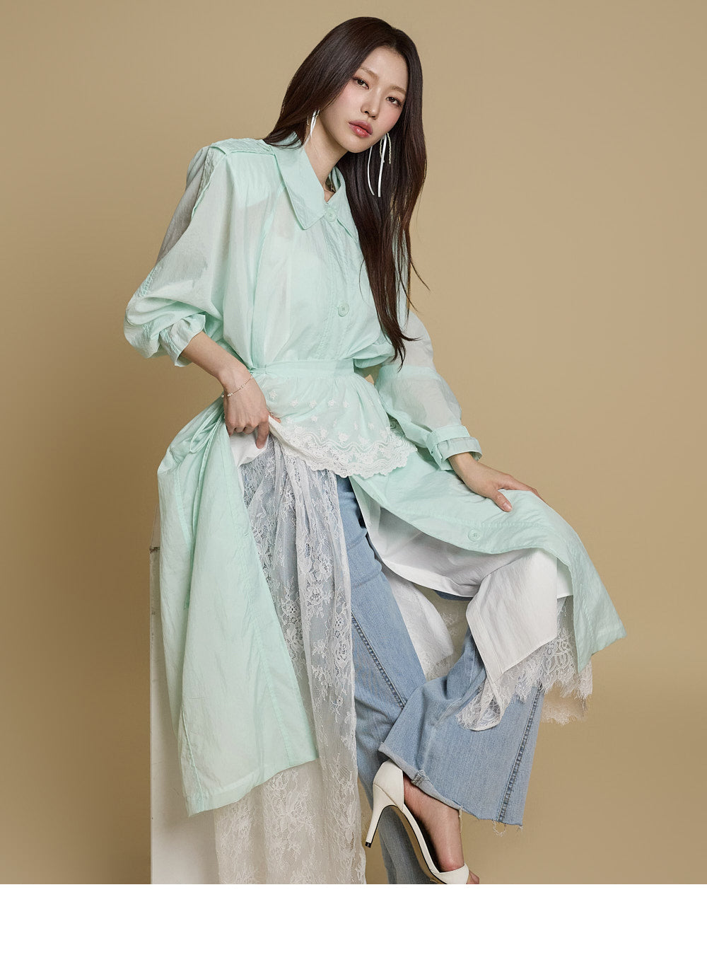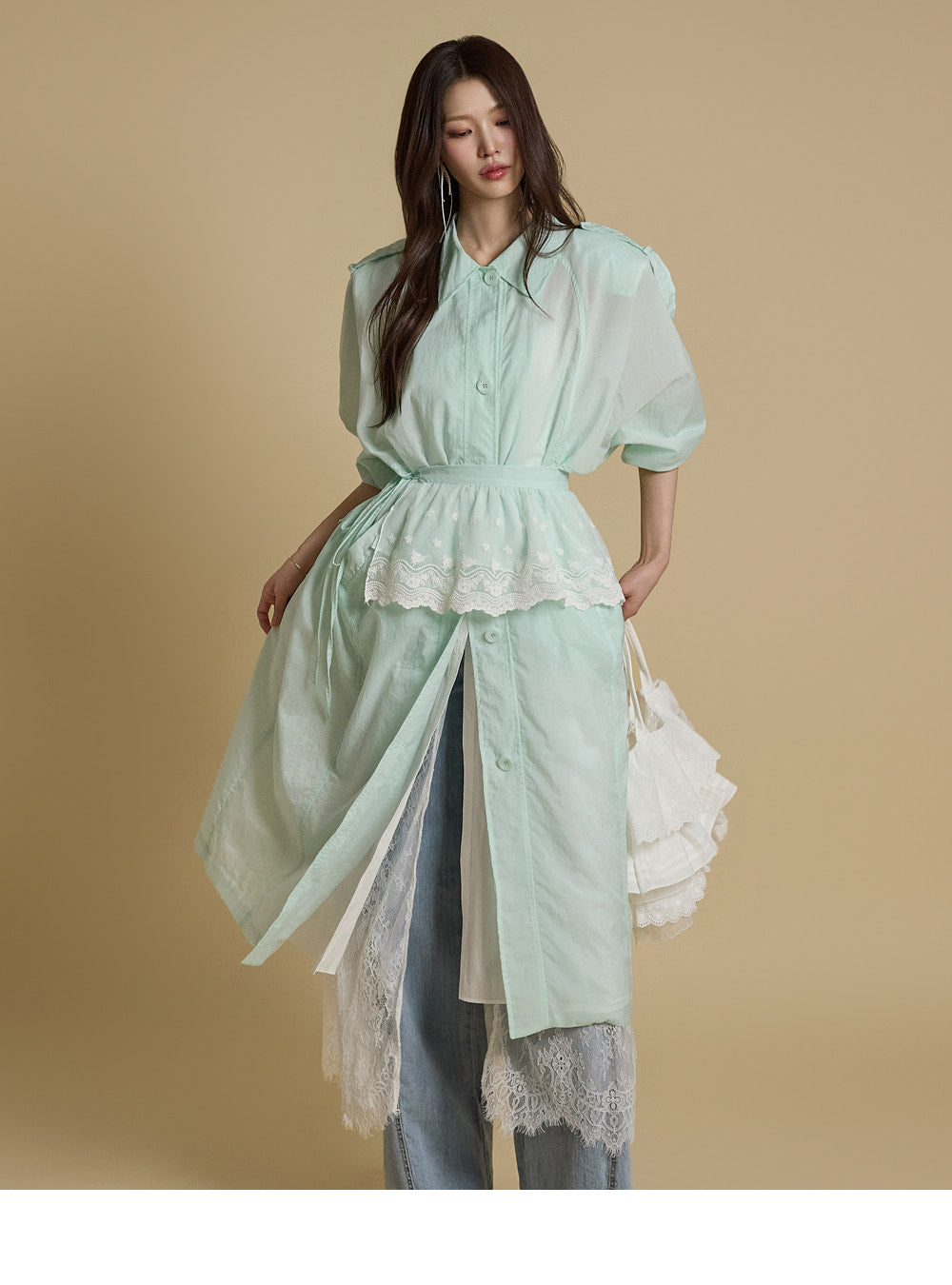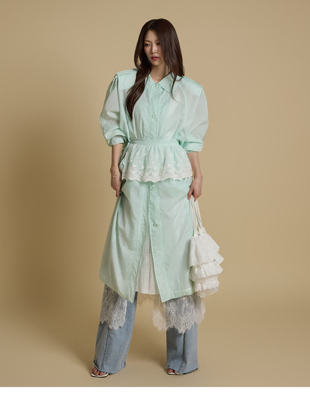 模特身高 171 厘米,穿着 MINT 颜色的均码衣服。