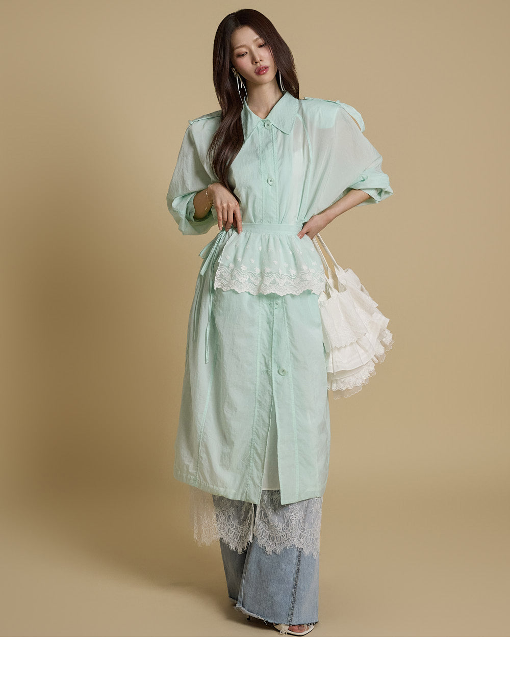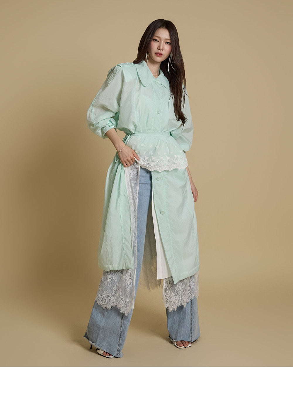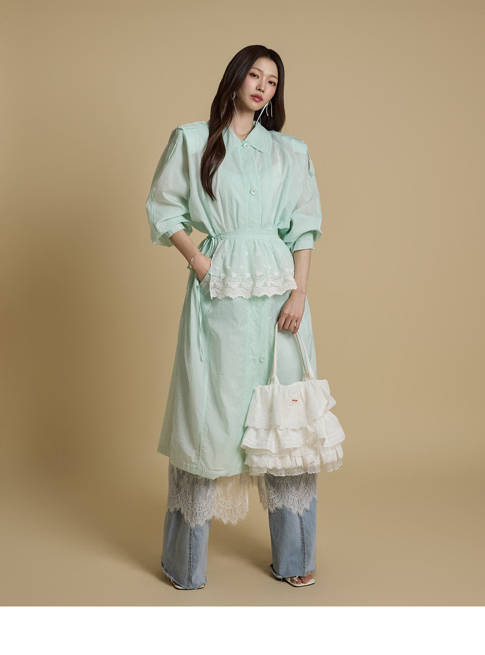 模特身高 171 厘米,穿着 MINT 颜色的均码衣服。