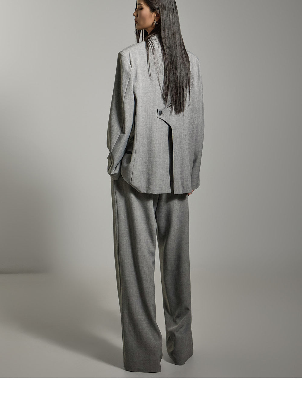 而后背的开衩和纽扣细节则增添了背后精致的感觉。