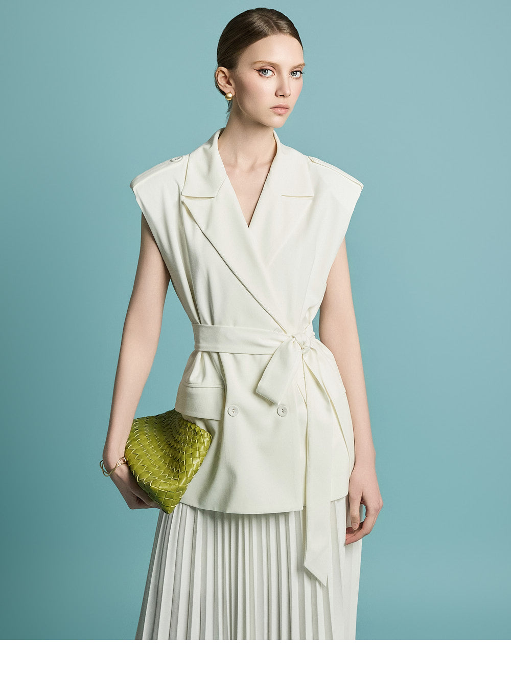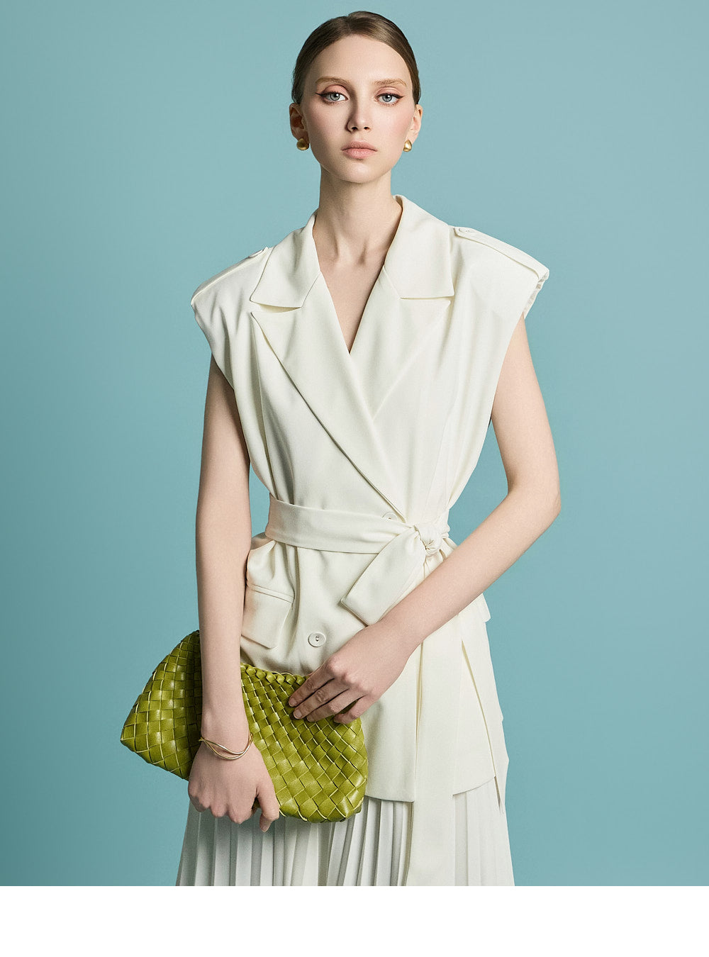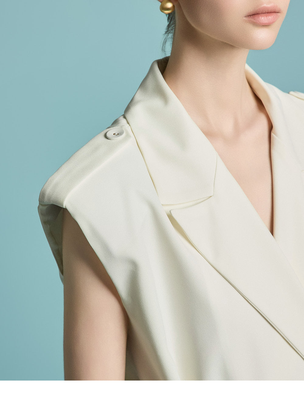 宽肩线和垫肩营造出稳定的轮廓,