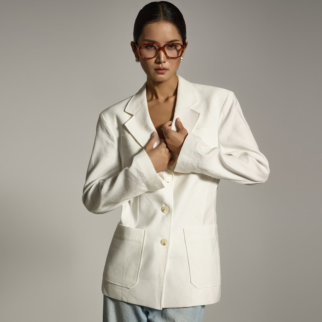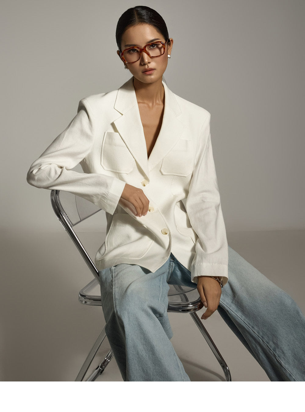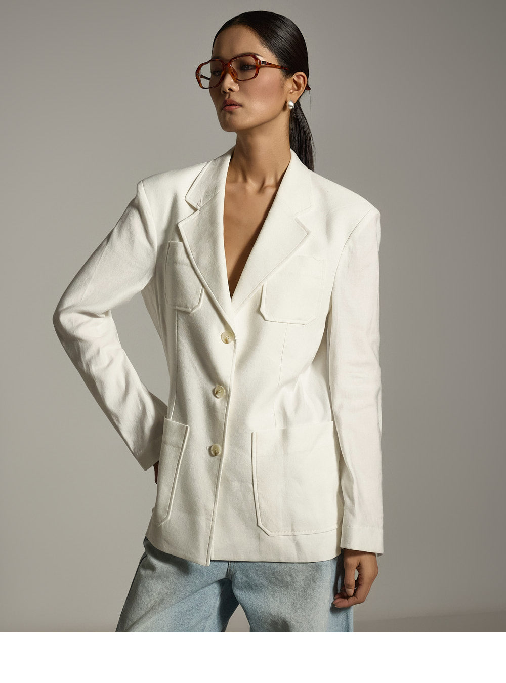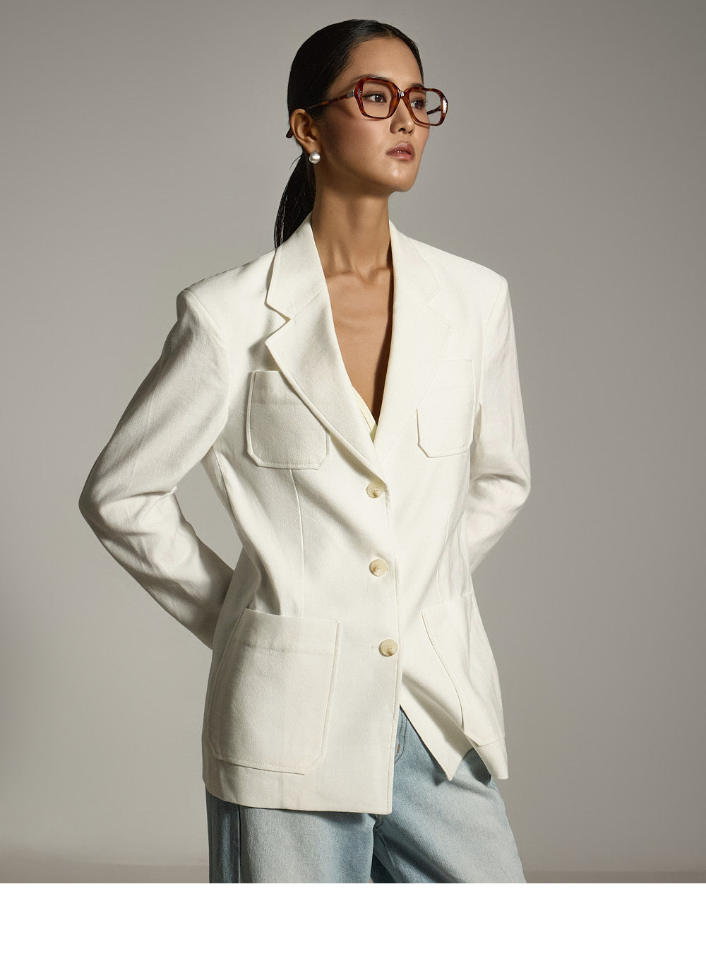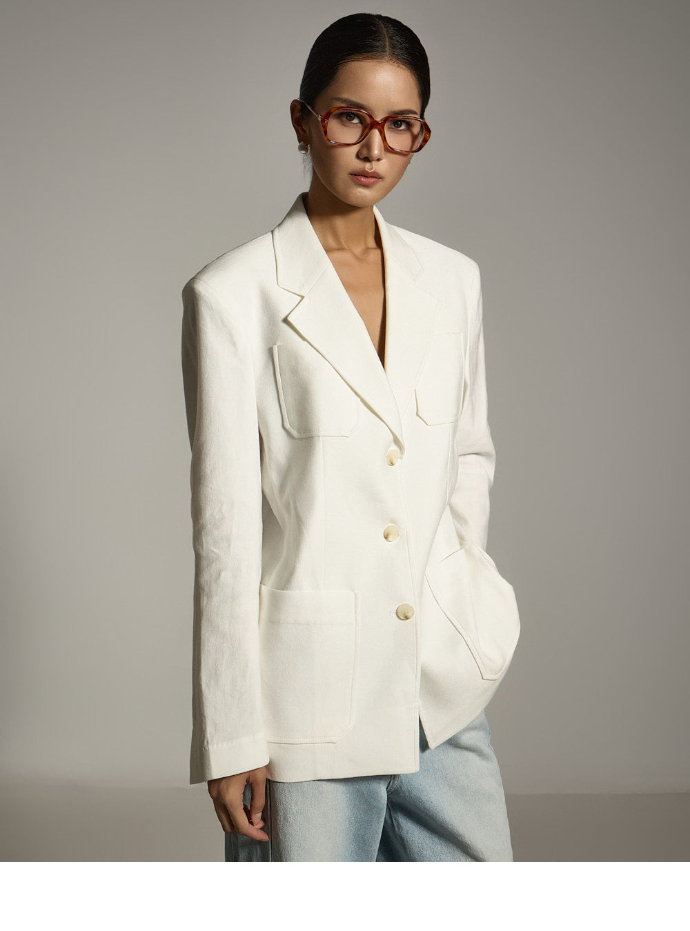 这是一件具有休闲日常气息的亚麻夹克。