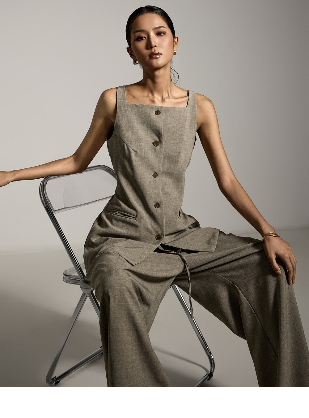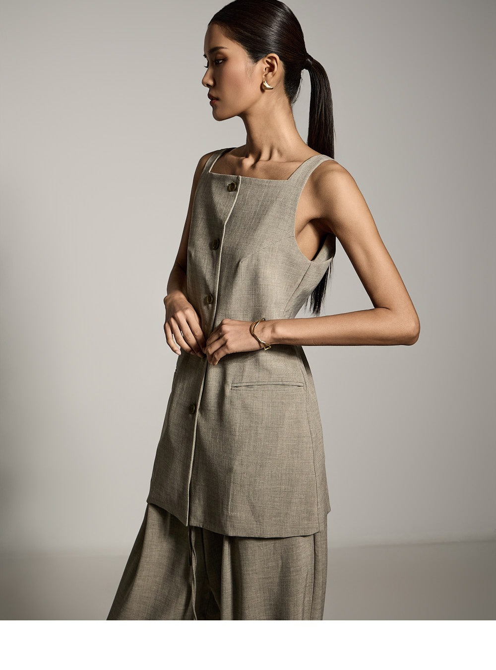 这件长背心散发着优雅的气息。