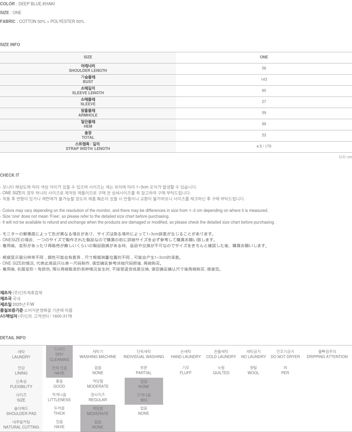 收到退回Dint的商品后,请填写随附的退货申请表,并按照收到时的包装方式重新包装(塑料袋、衣架、按金额赠送)。然后将其寄回Dint。