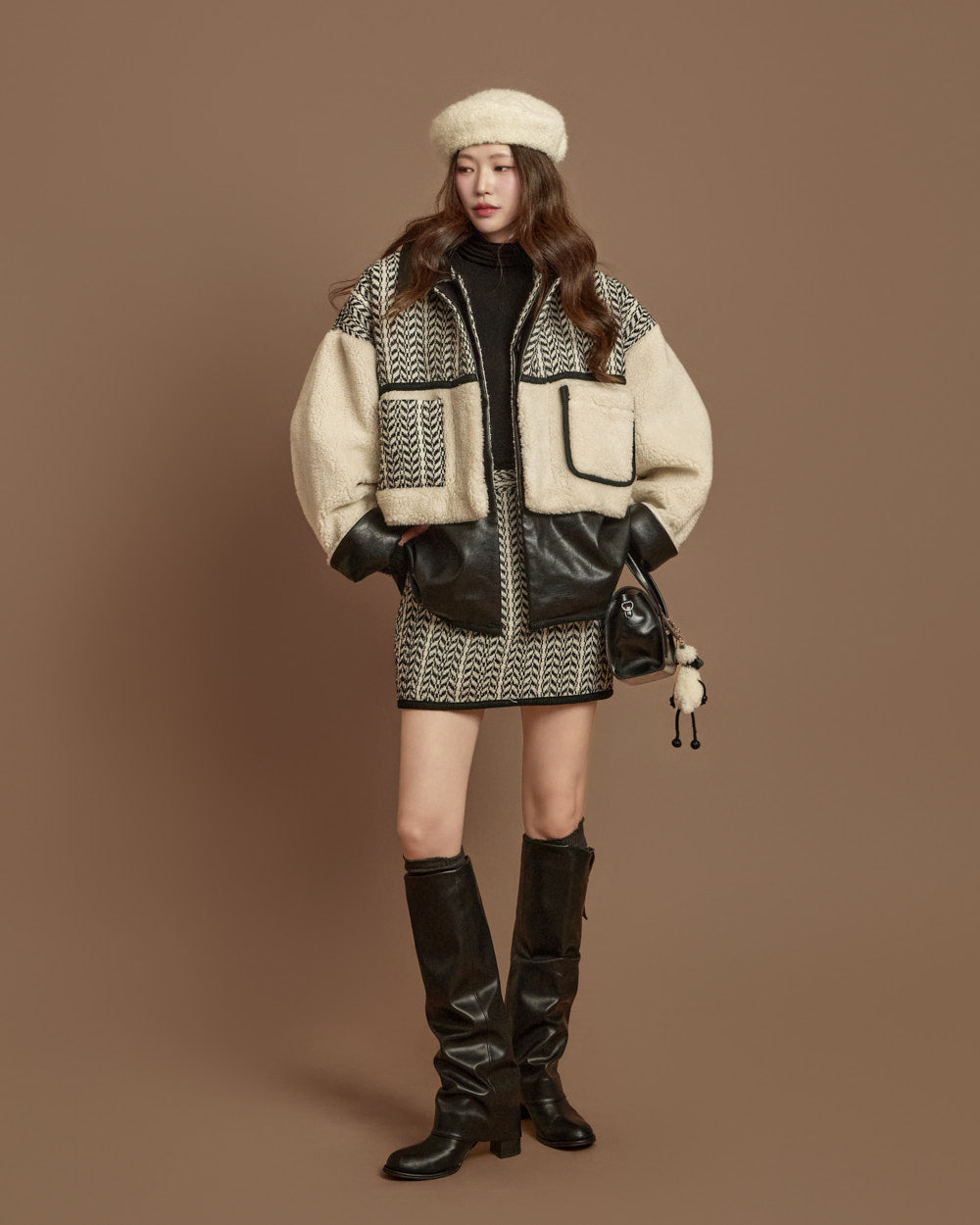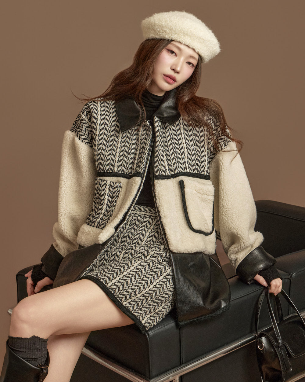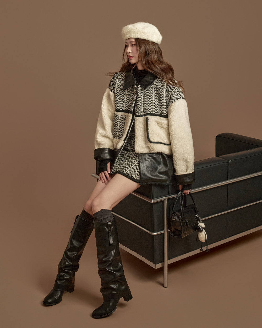 and the unique texture of boucle fabric completes a season-appropriate look.