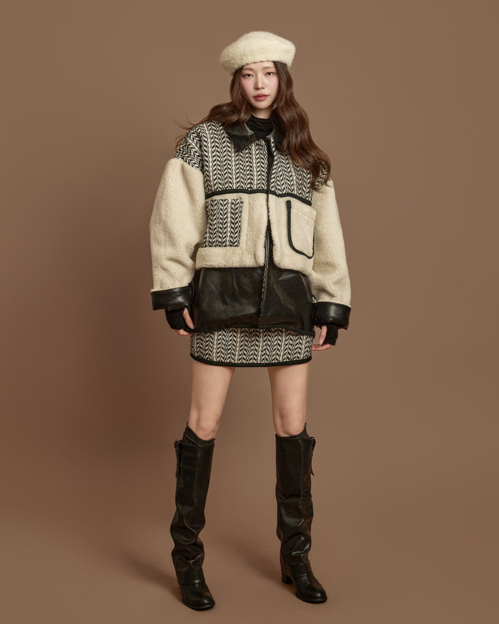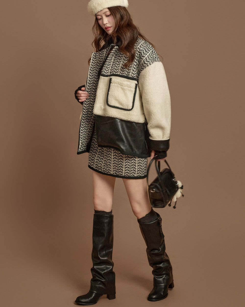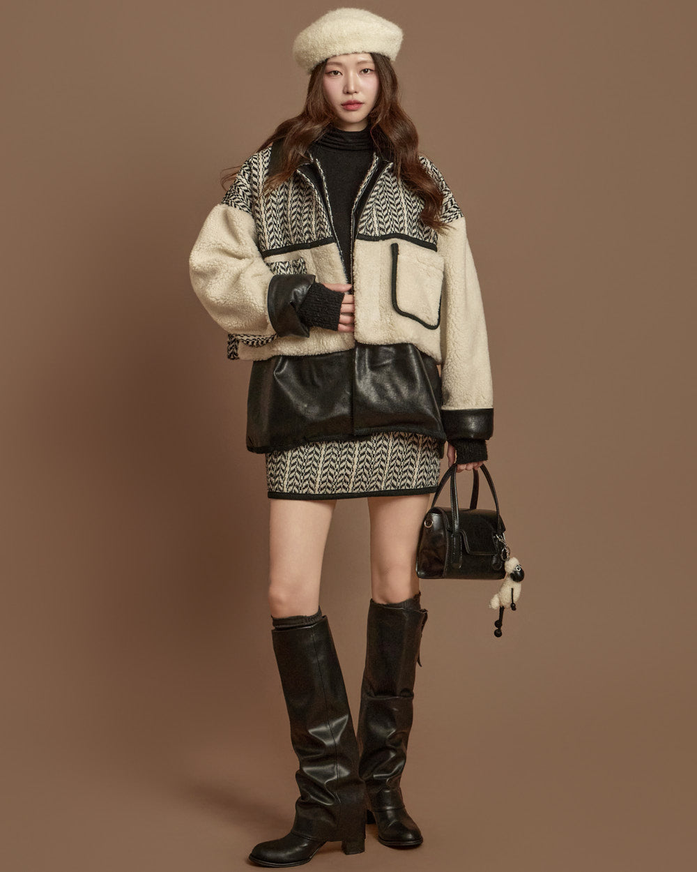 and the unique texture of boucle fabric completes a season-appropriate look.