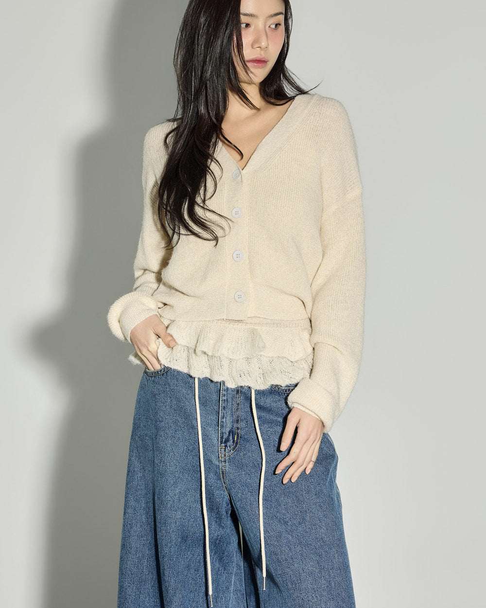 This lovely frilled layered cardigan is perfect for a casual look or a date.