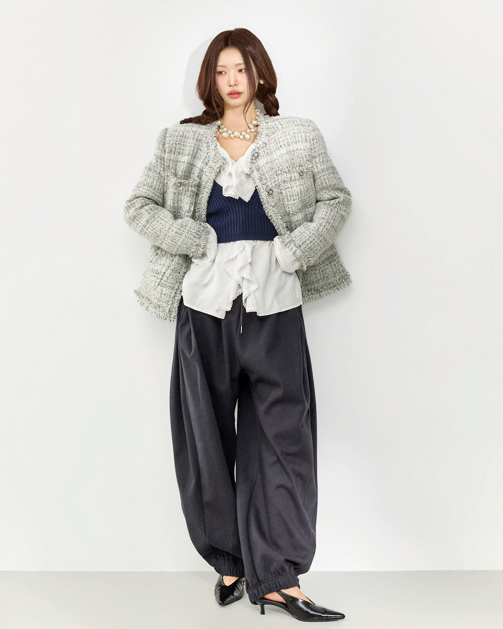 Model is 171cm tall and wearing size ONE, color IVORY.