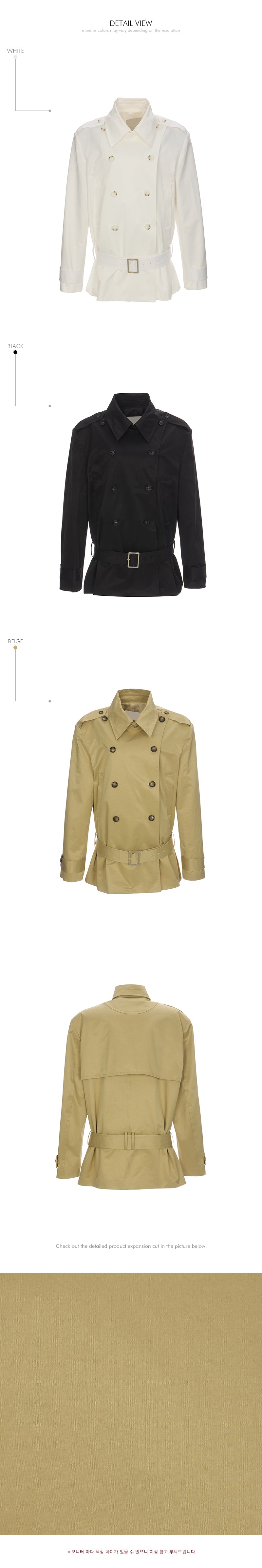 The double button front closure and waist belt detail
