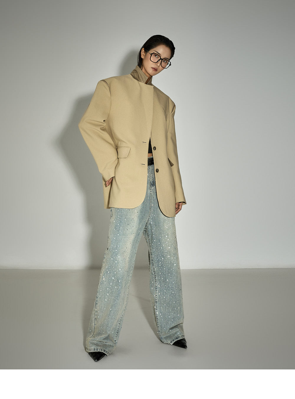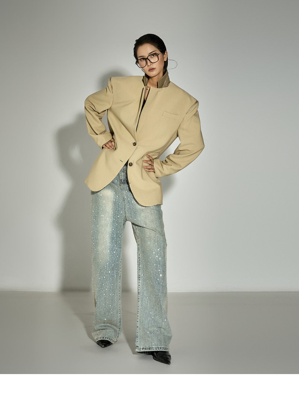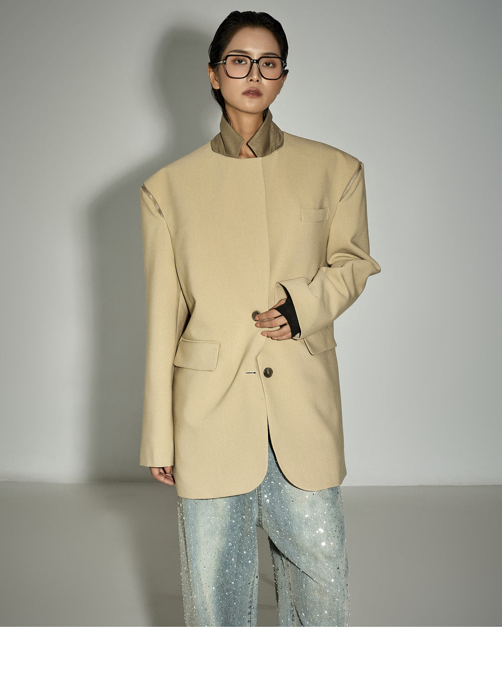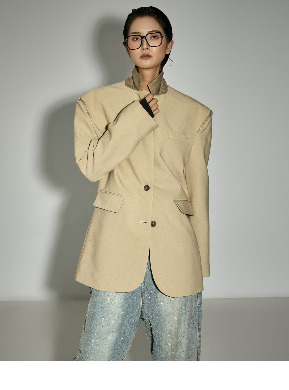 Zipper details on both shoulders offer a two-way styling option,