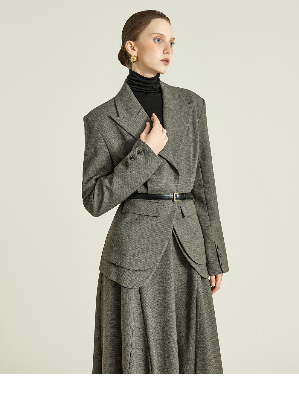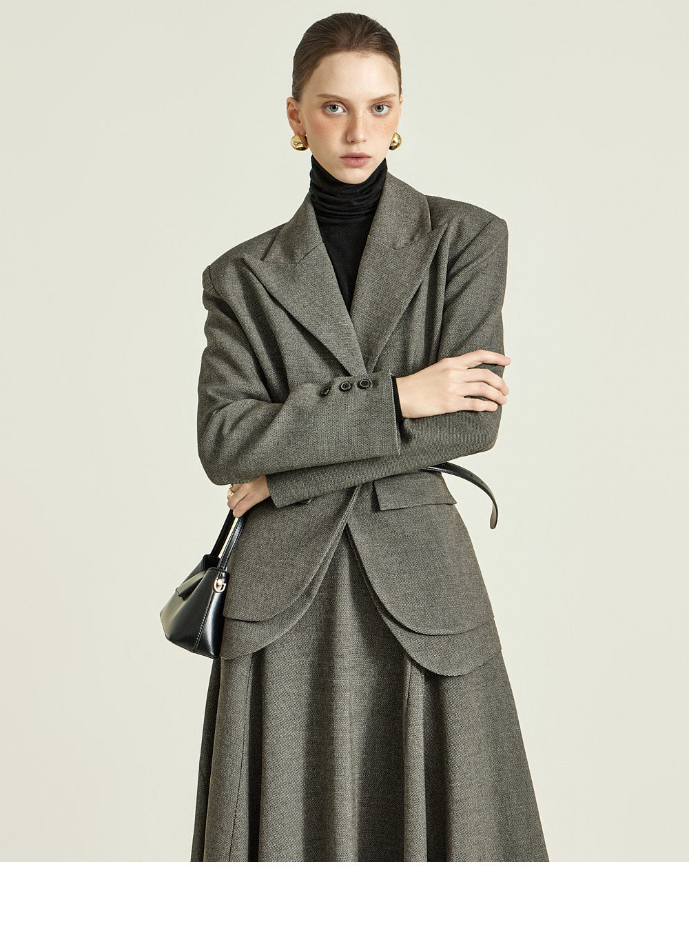 and the high shoulder line creates a masculine feel,