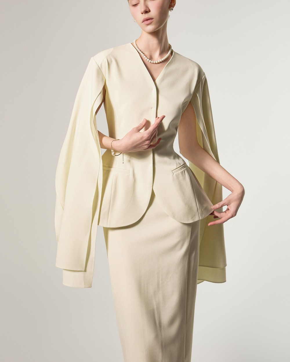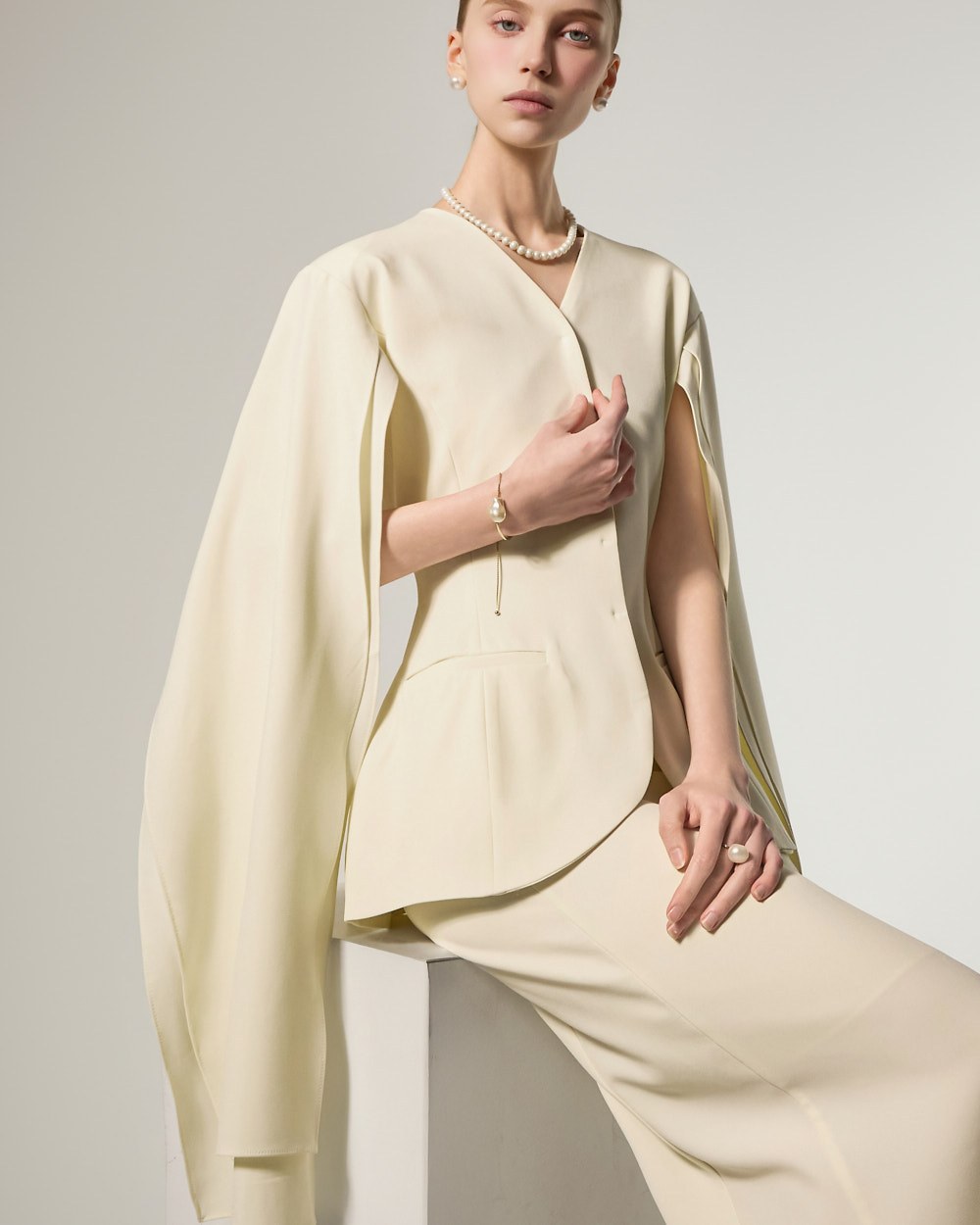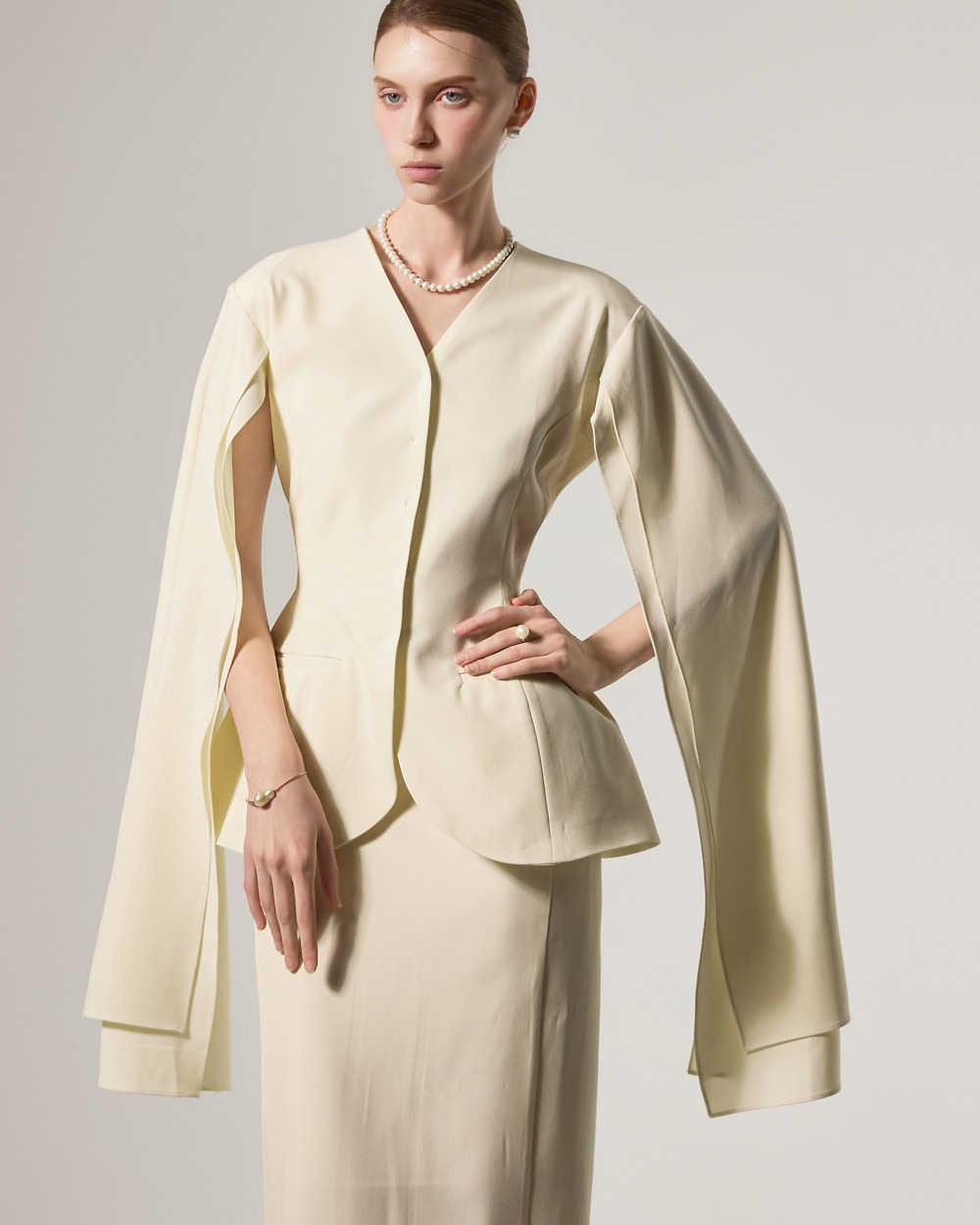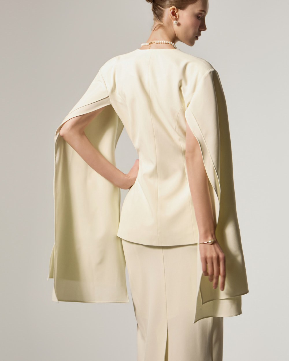 披肩袖设计带有开衩,举手投足间都散发出自然优雅的律动,