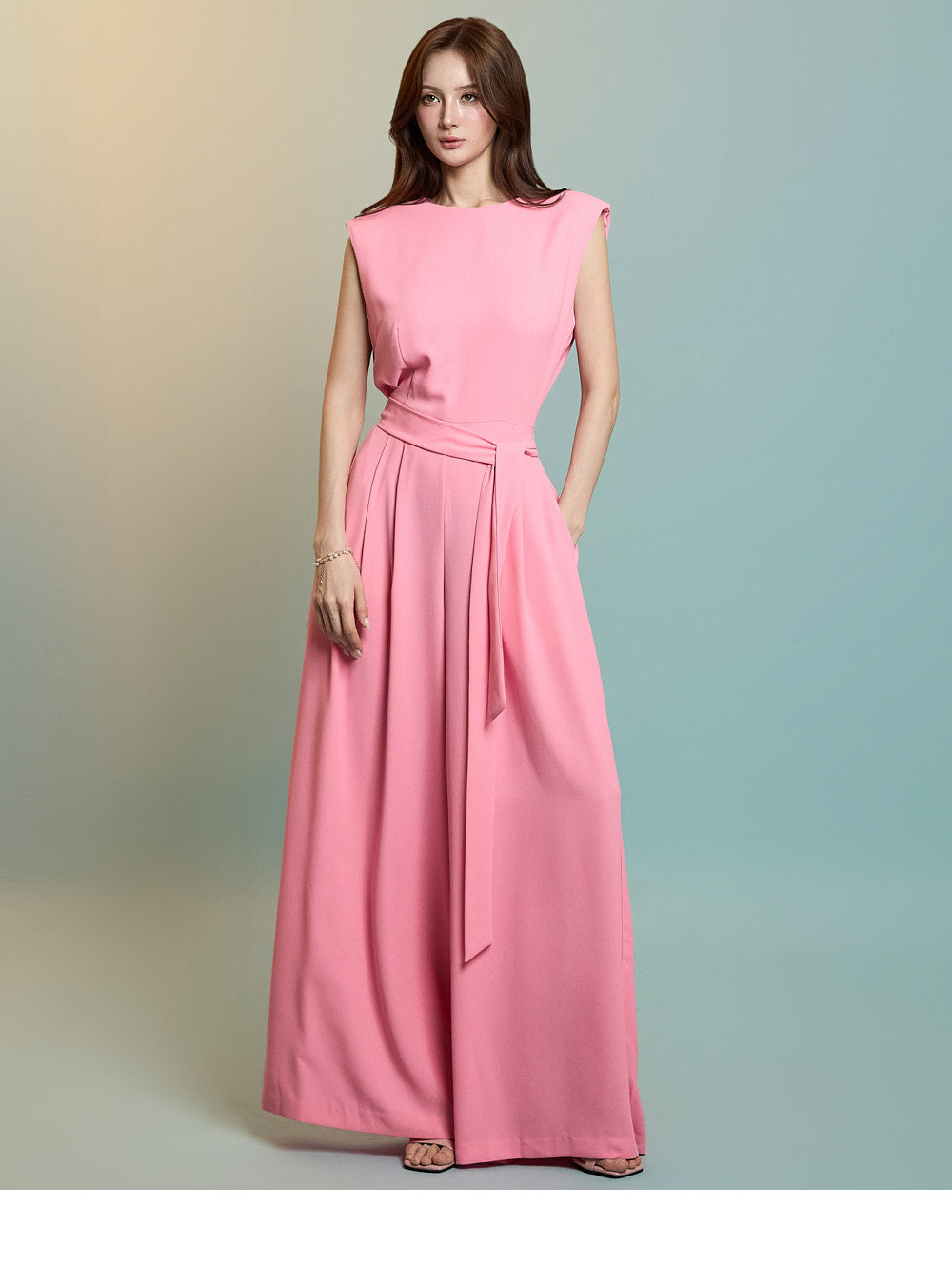 肩带设计和后开衩增添了时尚独特的轮廓,