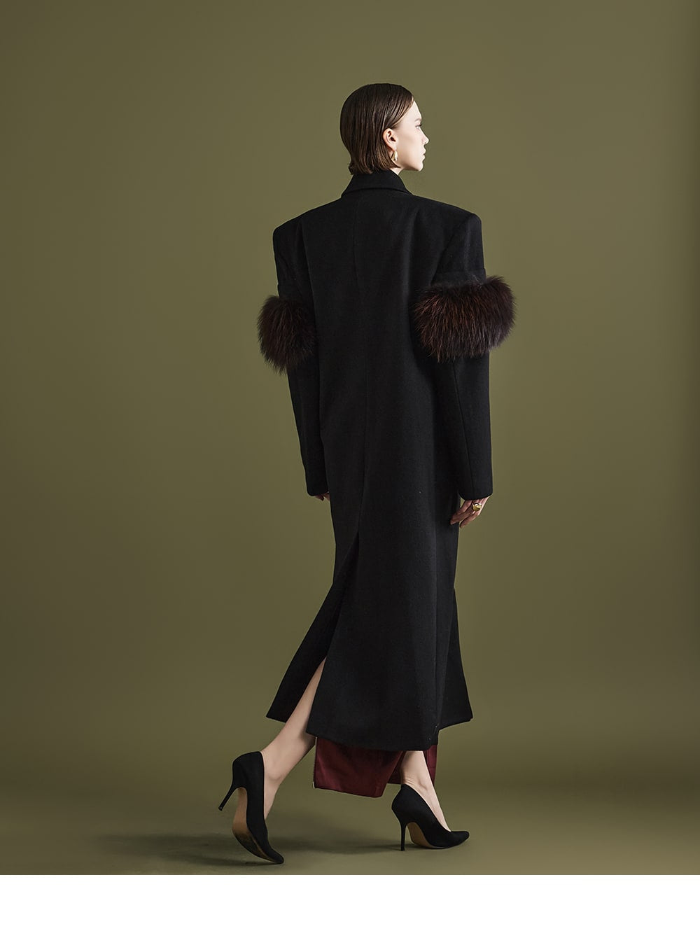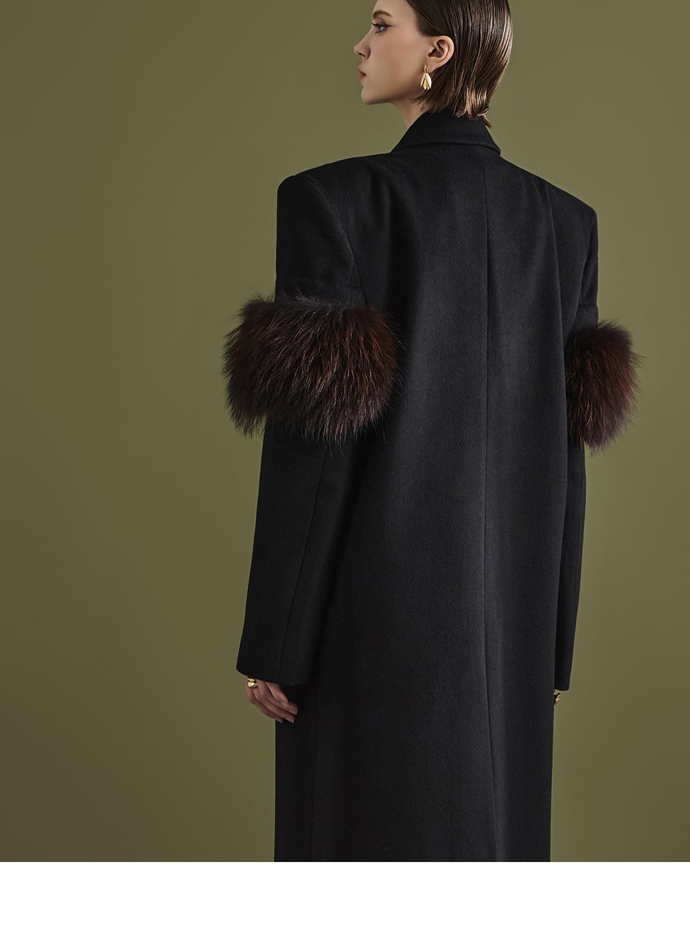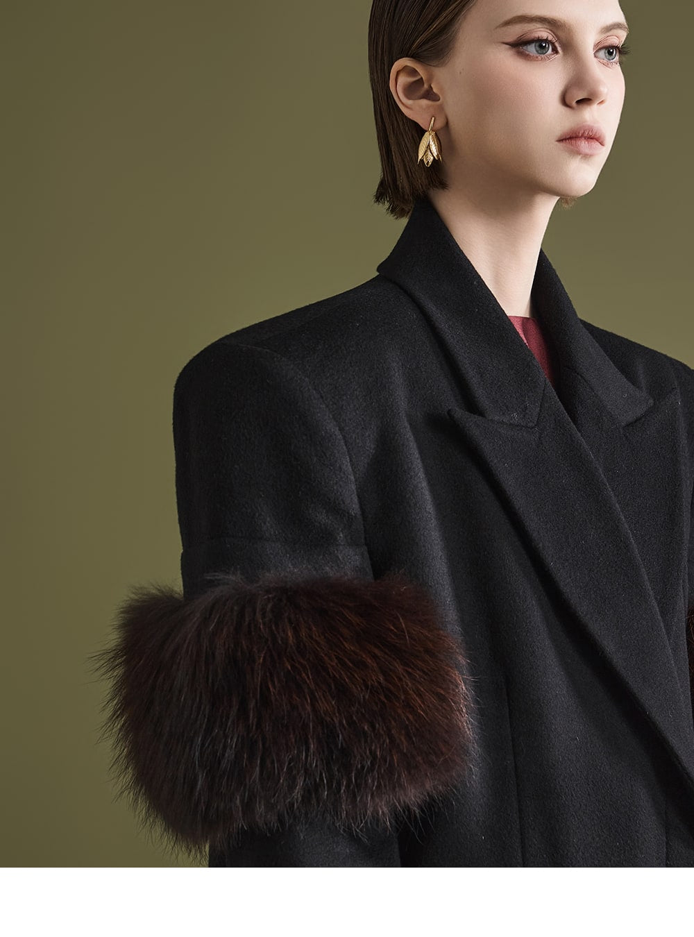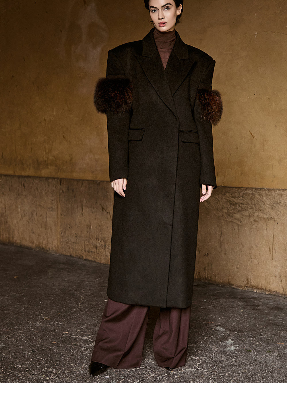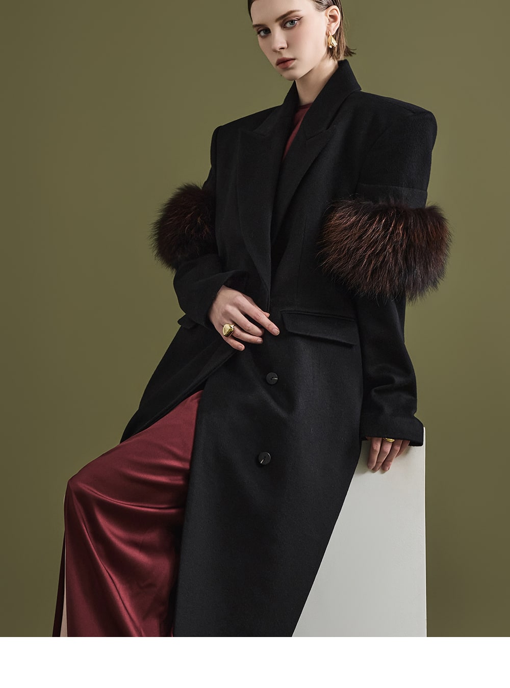 浣熊毛装饰的袖子让这身装扮更显时尚,