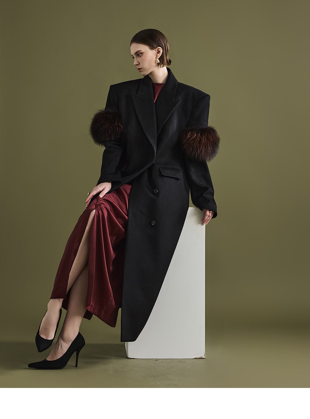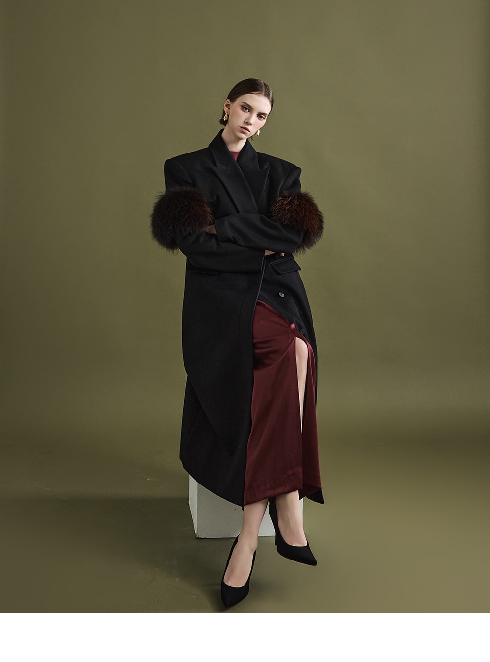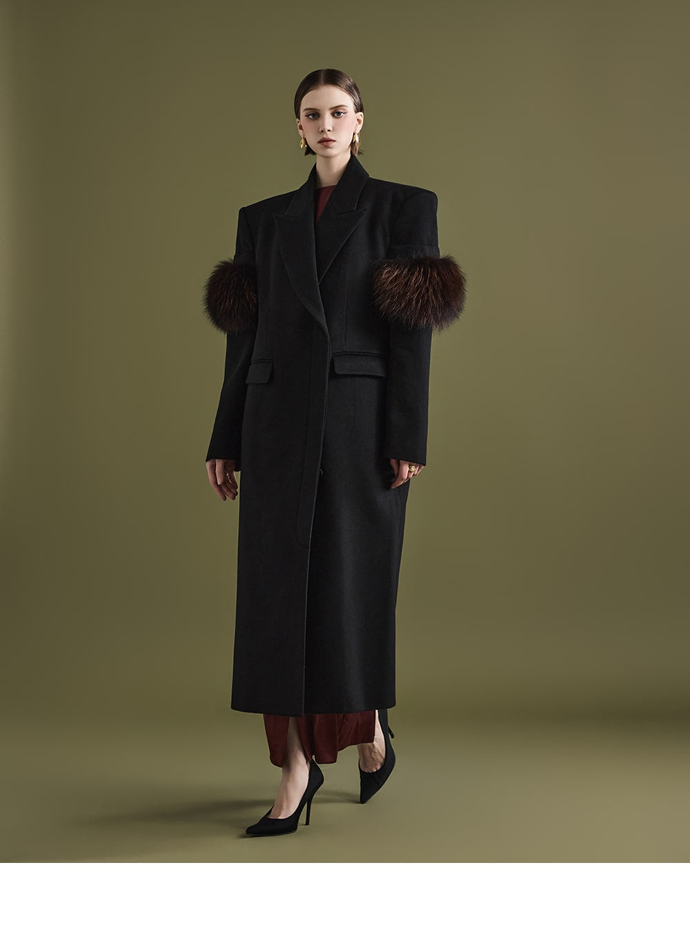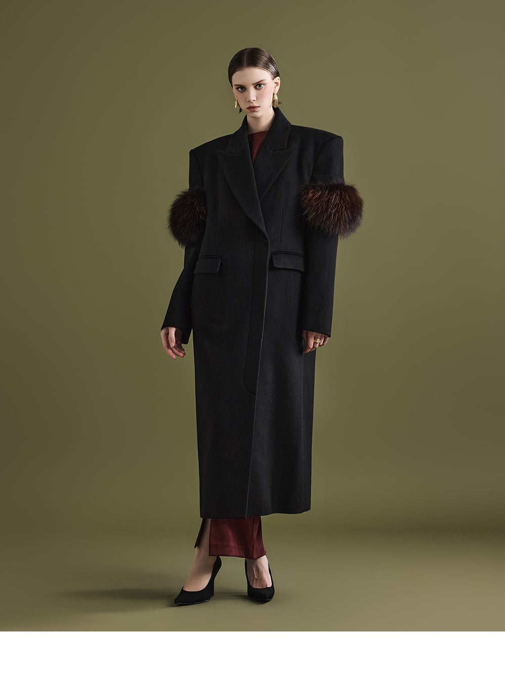 浣熊毛装饰的袖子让这身装扮更显时尚,