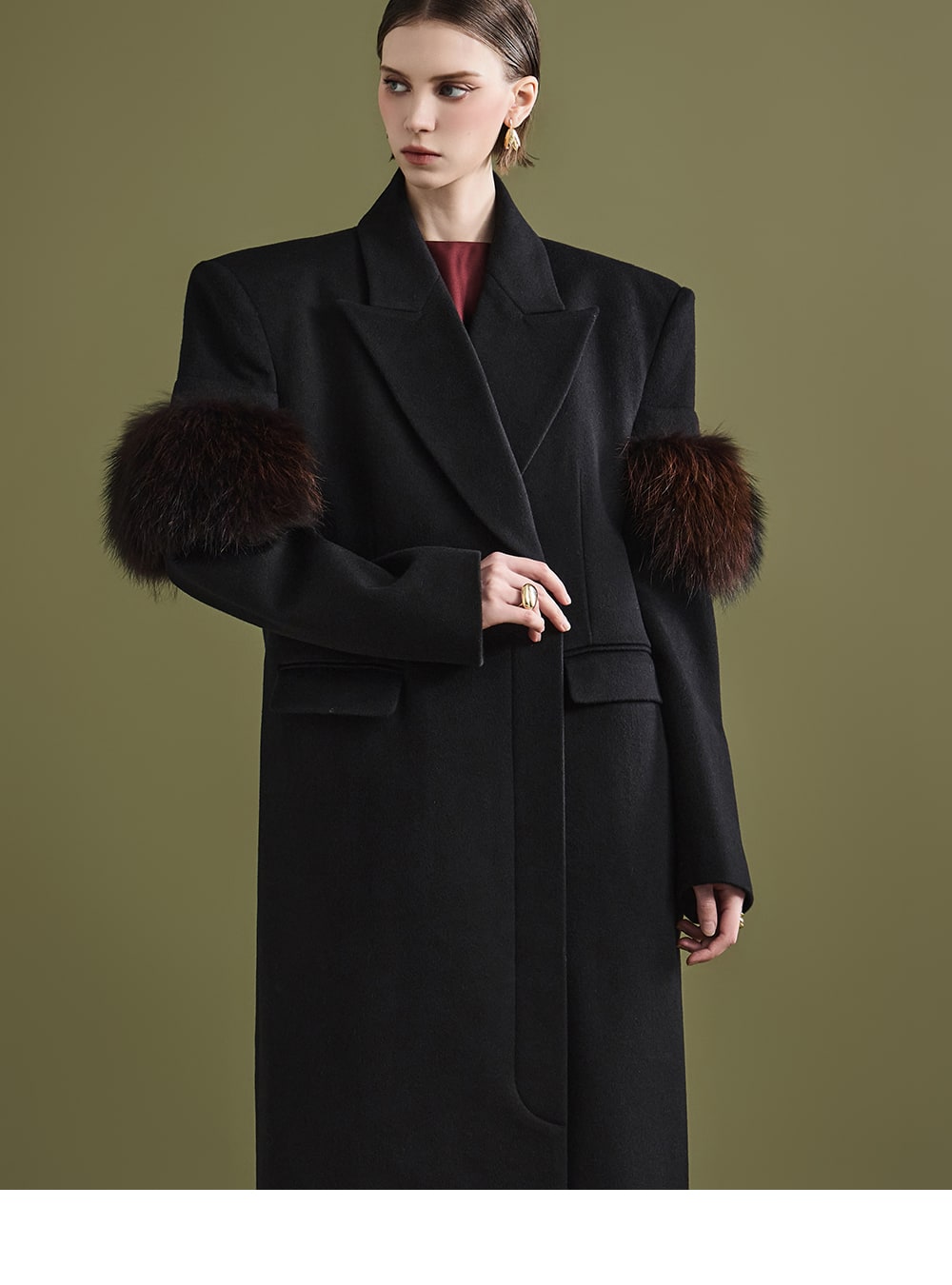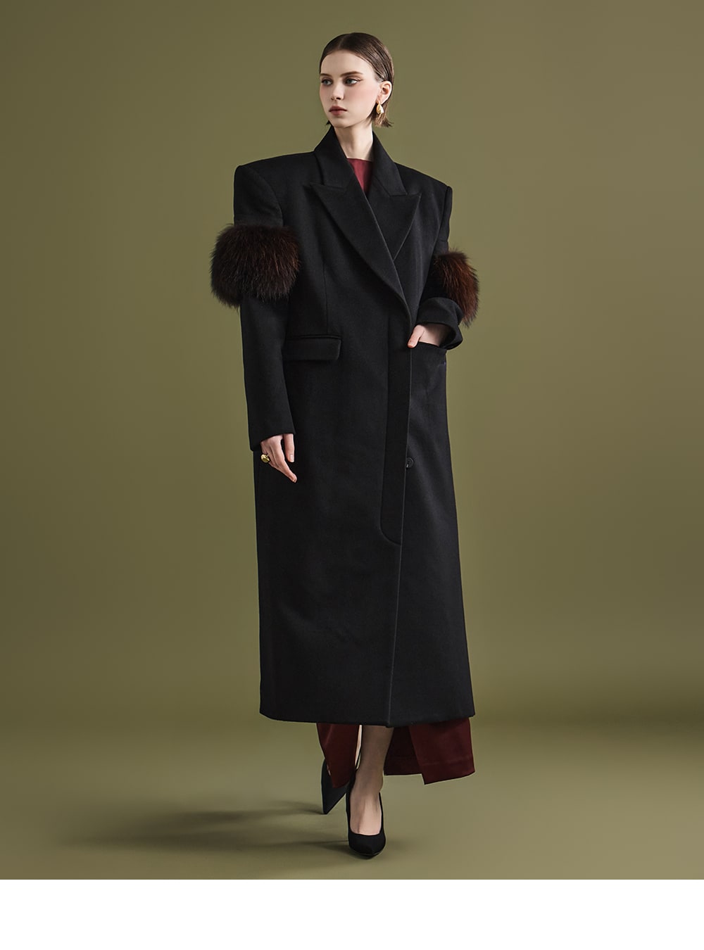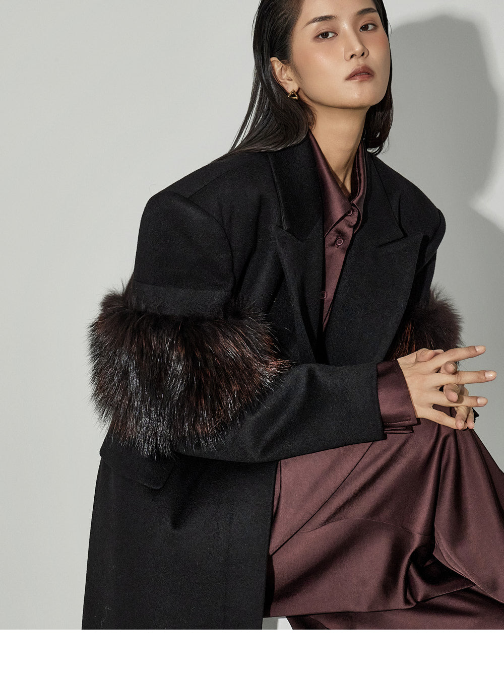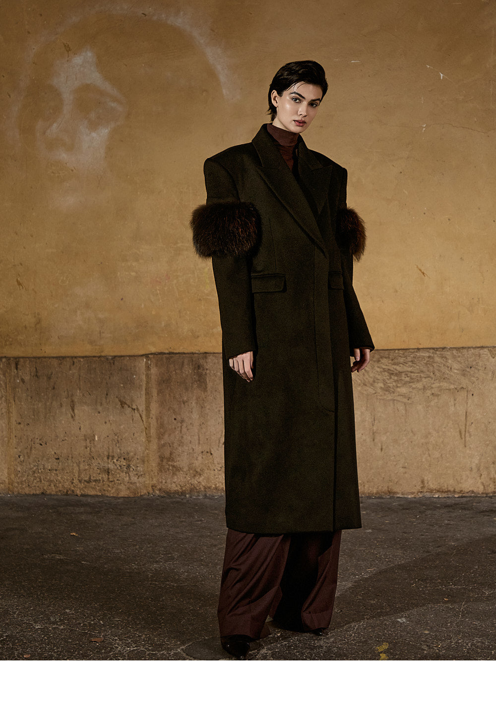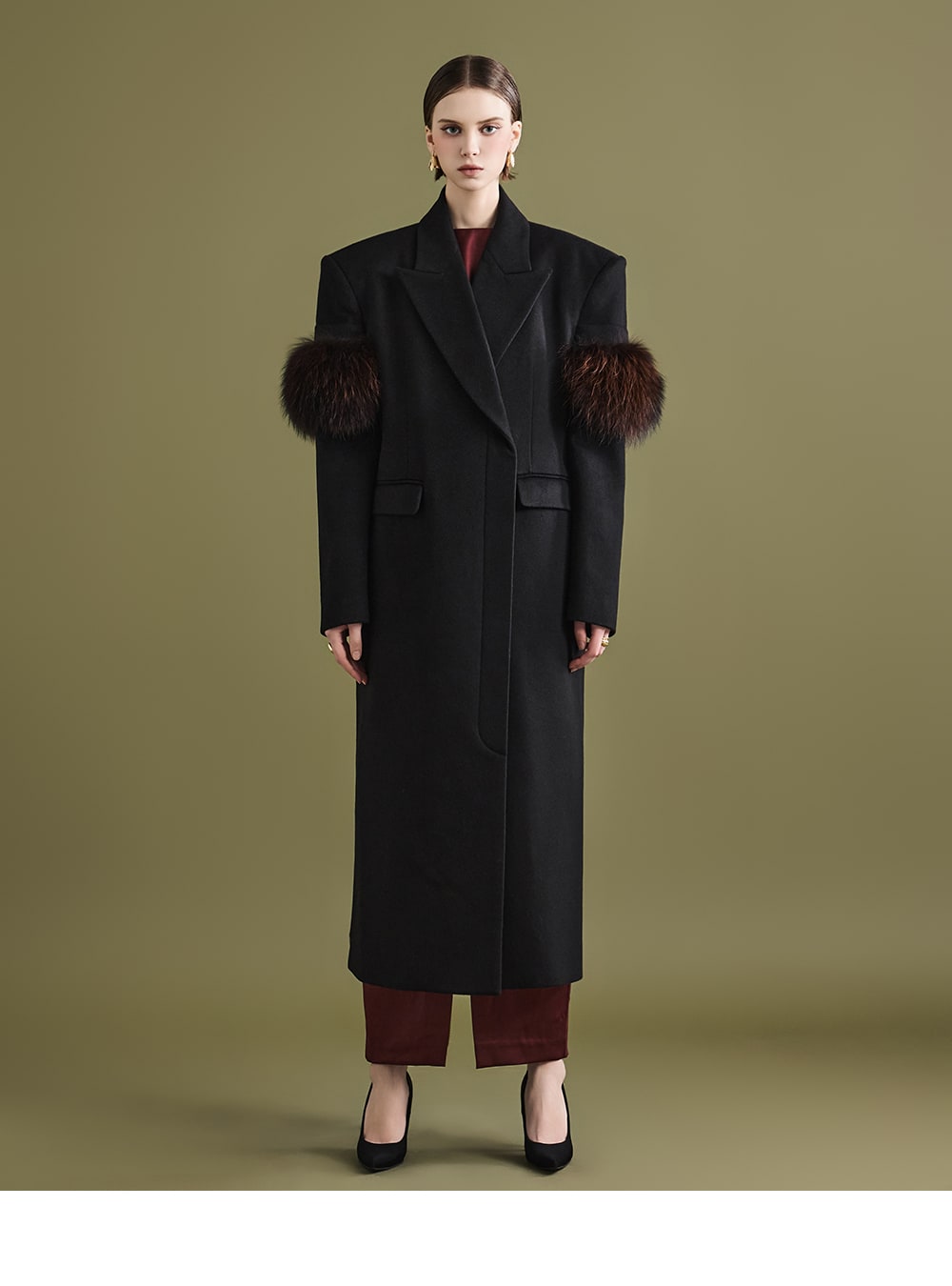浣熊毛装饰的袖子让这身装扮更显时尚,