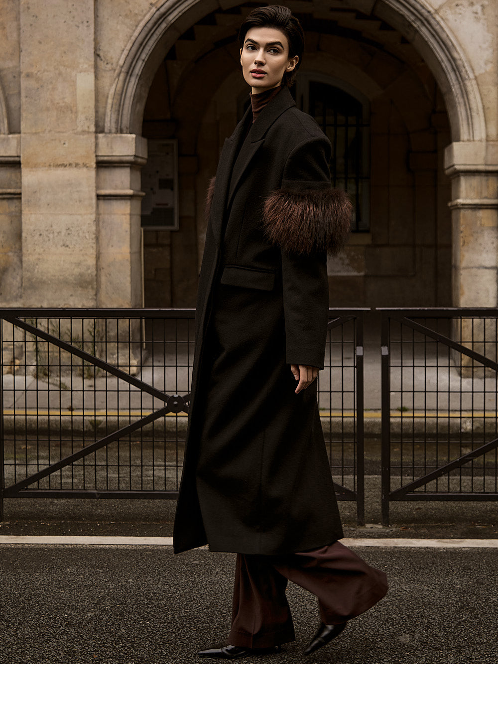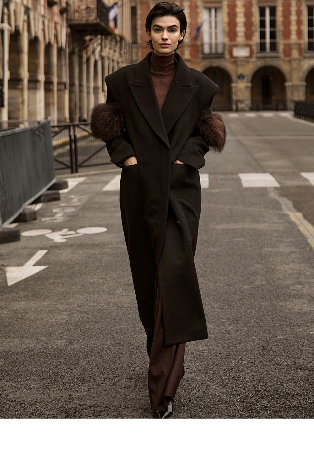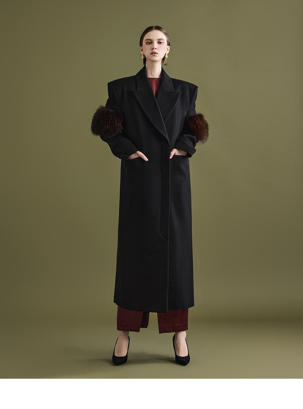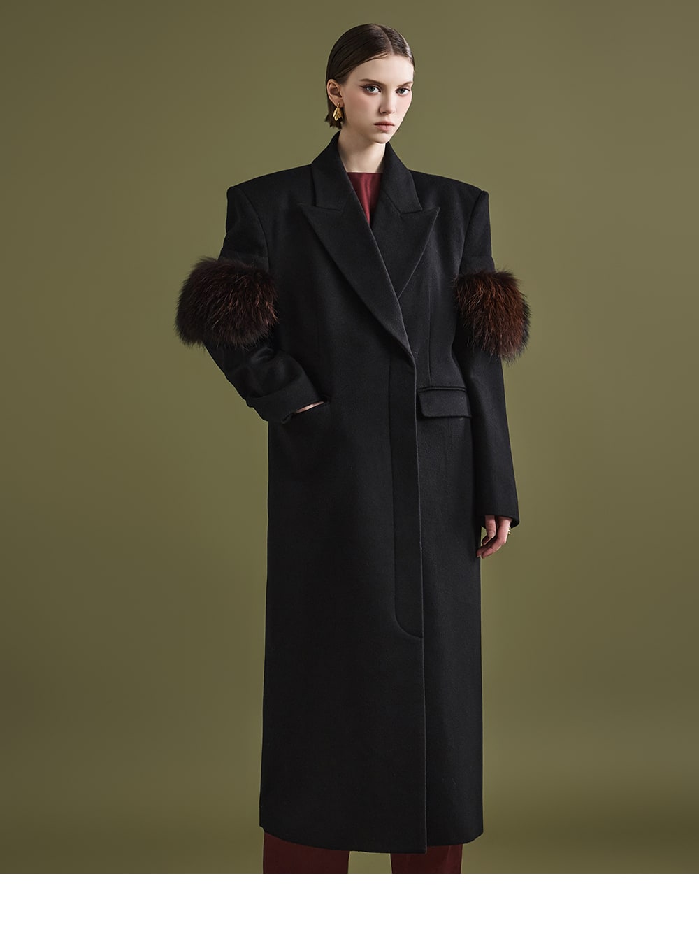 浣熊毛装饰的袖子让这身装扮更显时尚,