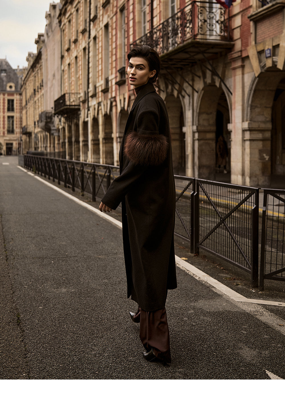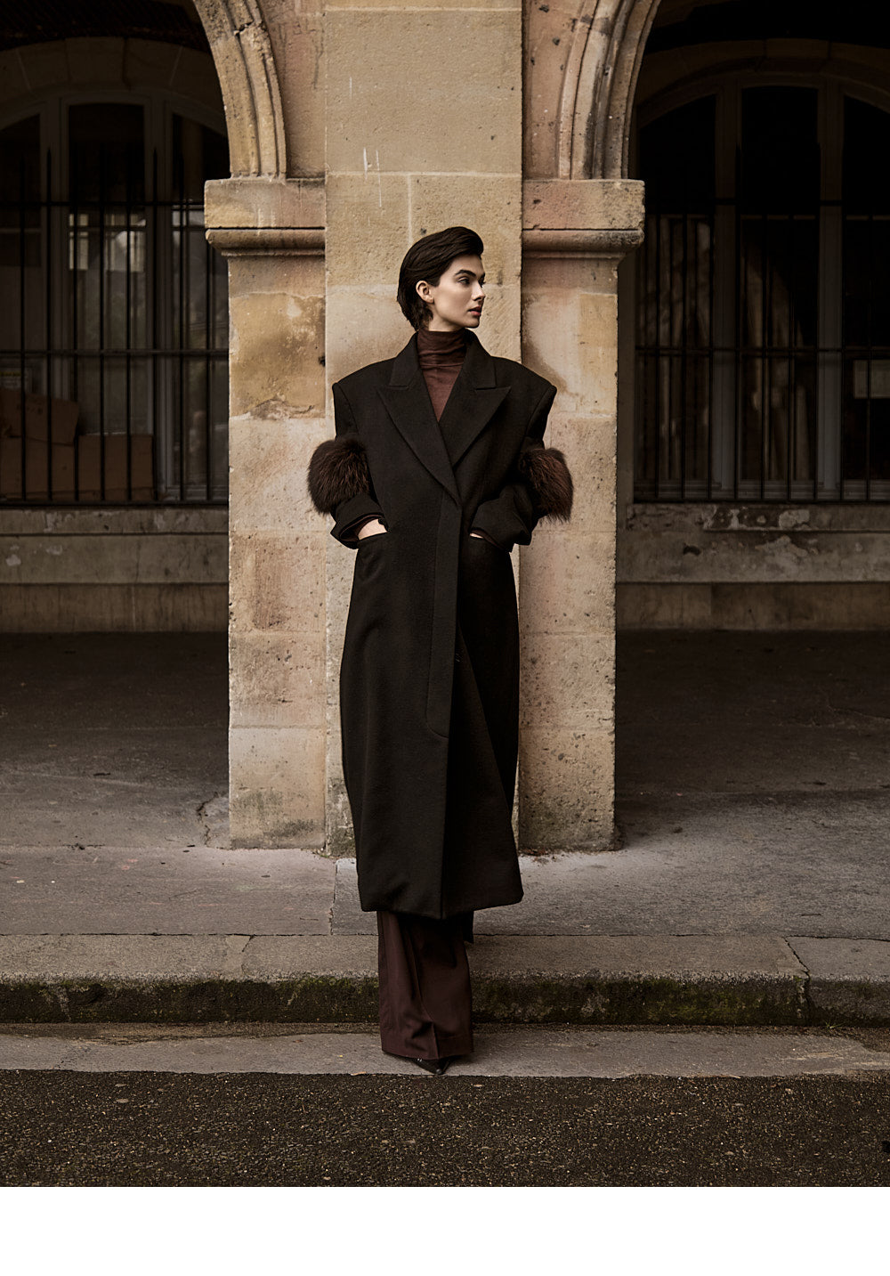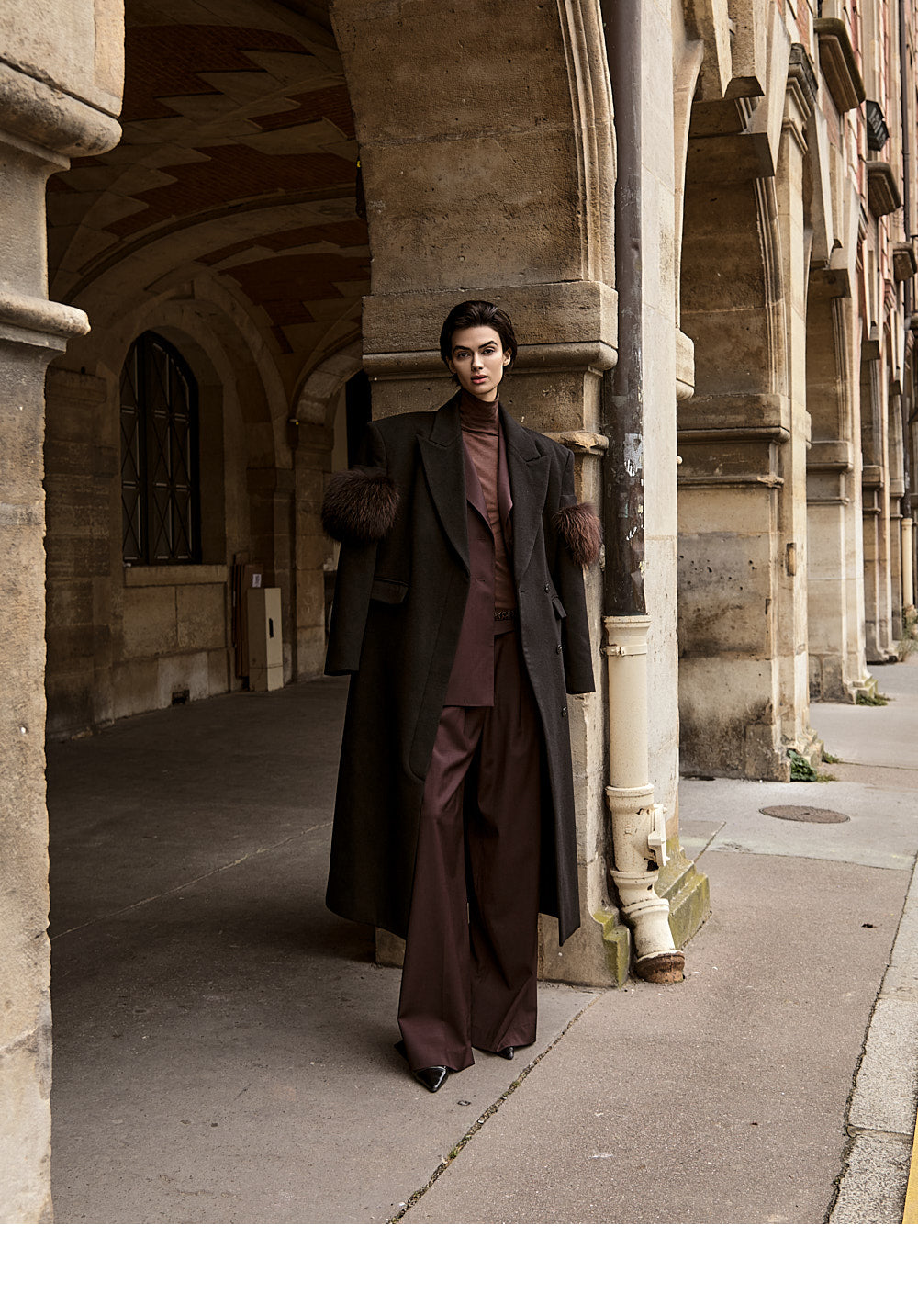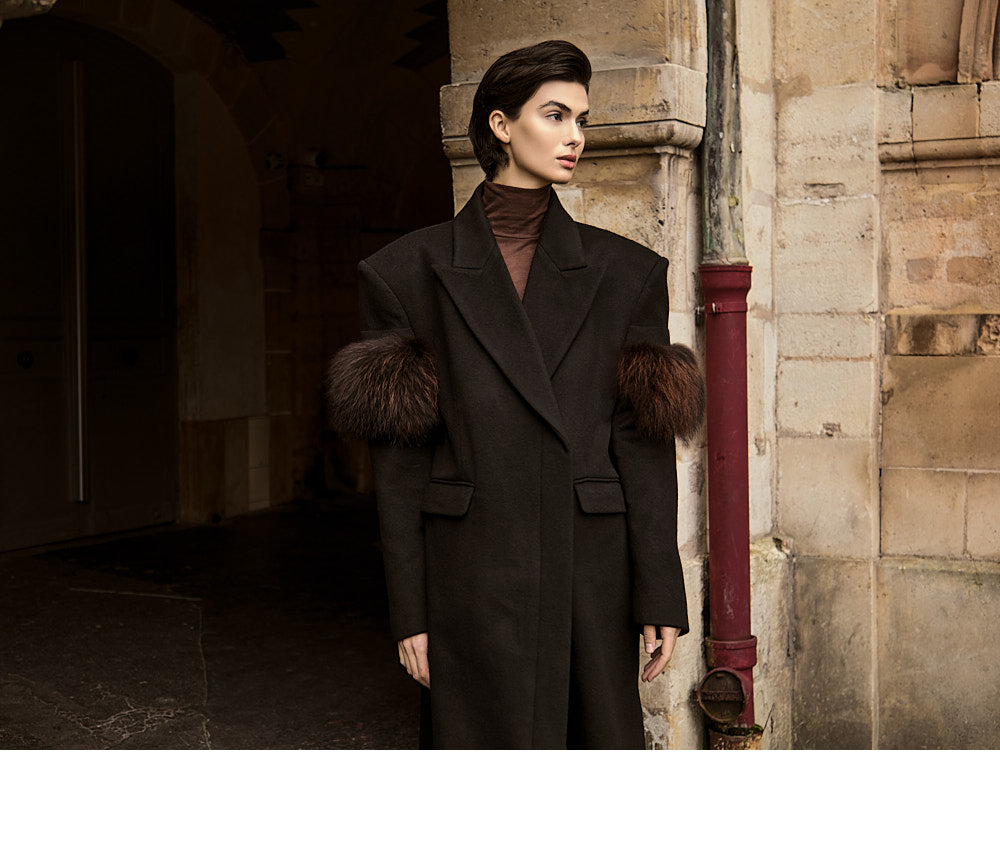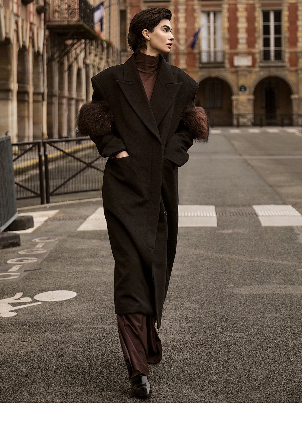浣熊毛装饰的袖子让这身装扮更显时尚,