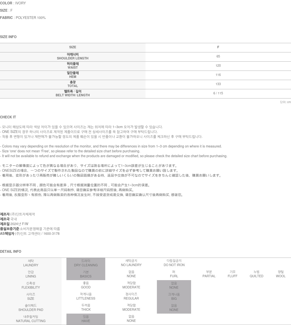 模特身高 173 厘米,穿着 IVORY 的 F 码。