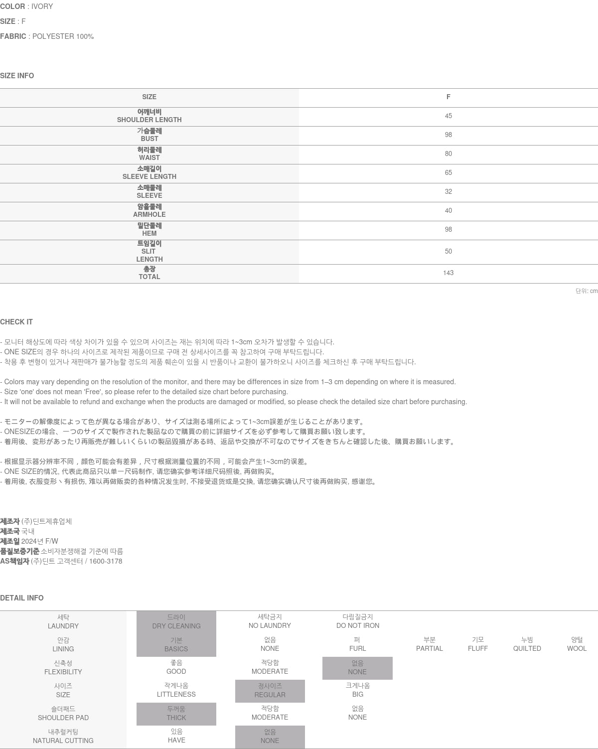 模特身高174CM,穿的是象牙色F码的衣服。????